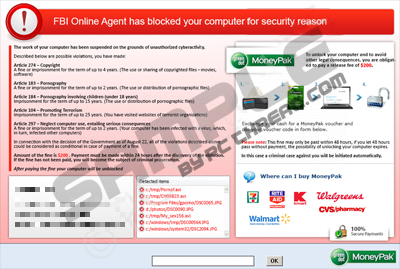 FBI Online Agent has Blocked your computer for security reason virusYou have to remove FBI Online Agent has Blocked your computer for security reason virus from your computer right now. It is not a legitimate message from the FBI, because no law enforcement agency has the jurisdiction that would allow it to block your desktop access and demand a release fee payment. Hence, it is obvious that FBI Online Agent has Blocked your computer for security reason virus is a malicious computer infection that cannot be tolerated. It is important that you do not believe the infection's claims otherwise you will lose a considerable amount of money. FBI Online Agent has Blocked your computer for security reason virus is part of the Ukash Virus group. This group of ransomware application has been prominent for more than half a year now, swindling more than 20,000 users daily and earning tens of thousands of dollars every single day. BI Online Agent has Blocked your computer for security reason virus adds up to the overall revenue generated by FBI Moneypak, FBI virus, Cuerpo Nacional de PolicĂa virus and many other versions of Ukash Viruses that are localized for all major countries. Instead of credit cards, FBI Online Agent has Blocked your computer for security reason virus uses alternative payment systems such as MoneyPak to receive the ransom fee. The malicious program tries to persuade users to pay the "fine": FBI Online Agent has Blocked your computer for security reason The work of your computer has been suspended on the grounds of unauthorized cyberactivity. Article 297 - Neglect computer use, entailing serious consequences Amount of the fine is $200. Payment must be made within 24 hours after the discovery of the violation. If the fine has not been paid, you will become the subjected of criminal prosecution. Below this message you are also given the number of the case and the name of the agent "responsible" for tracking you. Obviously, the information provided is false, because FBI Online Agent has Blocked your computer for security reason virus only want to reinforce the impression that you have really violated the federal laws. Do not pay the fine. You have not committed any crime. Remove FBI Online Agent has Blocked your computer for security reason virus from your computer following the instructions below: For Windows Vista & Windows 7: 1. Restart the computer. For Windows XP: 1. Repeat the steps 1 to 3 above. |