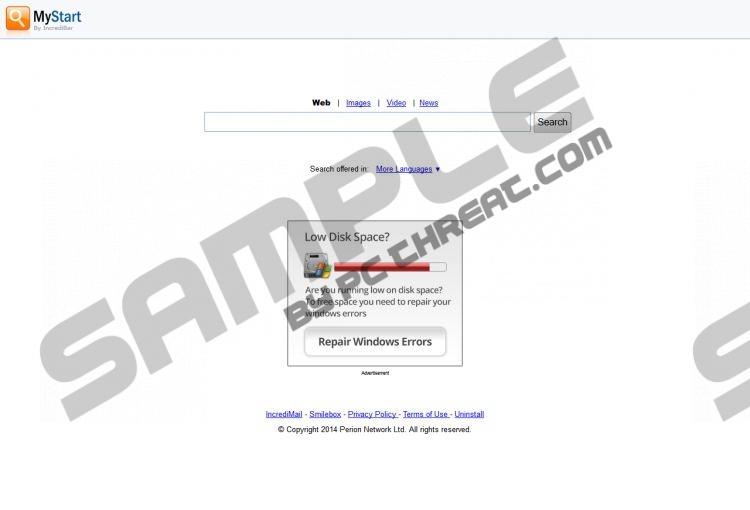 MyStart by IncrediBarMyStart by IncrediBar is an unwanted program classified as a browser hijacker, which can be installed without the user’s permission after downloading freeware, when visiting insecure websites, etc. The hijacker should be removed from the system, because it makes browsing sessions tiresome, and, most importantly, it may be the main channel to infect your PC with even more dangerous malware than MyStart by IncrediBar is. This is why you should use a reliable spyware removal tool and remove this cunning infection from the system. Do not get surprised when you find that none of your internet browsers can provide you with the search engine you usually use once you open it. MyStart by IncrediBar can modify the settings of Internet Explorer, Mozilla Firefox, Google Chrome and others. If you already have your home page replaced with mystart.incredibar.com, you should not use its search engine, because it will redirect you to infectious websites containing Trojans that can generate interfaces of rogue malware removal tools or steal your valuable data, worms, keyloggers and other malicious infections. Moreover, this unwanted program generates pop-up messages or ads, to whose content you should pay no attention. For example, one of the messages may be the one presented below: