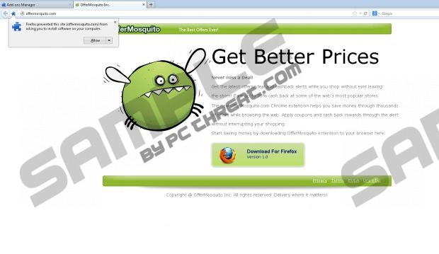OfferMosquitoIf you wonder whether you could trust OfferMosquito, it should be said that it is not a very serious threat itself; however, it might cause harm to the security of your computer via various advertisements. If you have downloaded OfferMosquito, you have probably noticed that it is compatible with Mozilla Firefox and Google Chrome browsers, which means that you can get in touch with it if you use these browsers. Even though this application promises that you will be able to save money if you do shopping online, you should think twice whether you want to have this program on the system. As OfferMosquito is going to show you various advertisements all the time, it might not let you browse the web freely. If it seems rather unacceptable, you should get rid of OfferMosquito as soon as possible. You should know that you are going to see various offers, deals, coupons, and cashback alerts if you install this application on your system. This software is known as an advertising-supported program; thus, it would be too naive to think that you will be able to escape from all the annoying ads easily. We recommend that you remove OfferMosquito in order not to end up in some websites which contain malicious elements. If you want to reduce the possibility of infecting your system, follow this tip and do not click on these promotions by any means. What is more, our specialists have found out that OfferMosquito might collect information about the websites that you visit, the advertisements that you click on, and the search queries that you enter. It might also collect some technical information including IP address, general information about your browser and computer’s operating system. As OfferMosquito states in its Privacy Policy, this information is gathered in order to improve the website, products, and other services. In addition, this information is shared with third parties which produce advertisements. Remove OfferMosquito from your system in order not to reveal this non-personally identifiable data. Does OfferMosquito annoy you? You can always remove it from your system whenever you want. You can follow manual removal instructions that we have shared with you or you can just simply scan your PC with a reliable antimalware tool. In our opinion, SpyHunter is the tool which can be really trusted. It will not only remove all the threats, including OfferMosquito, but also make sure that your computer is protected in the near future. How to remove OfferMosquitoMozilla Firefox