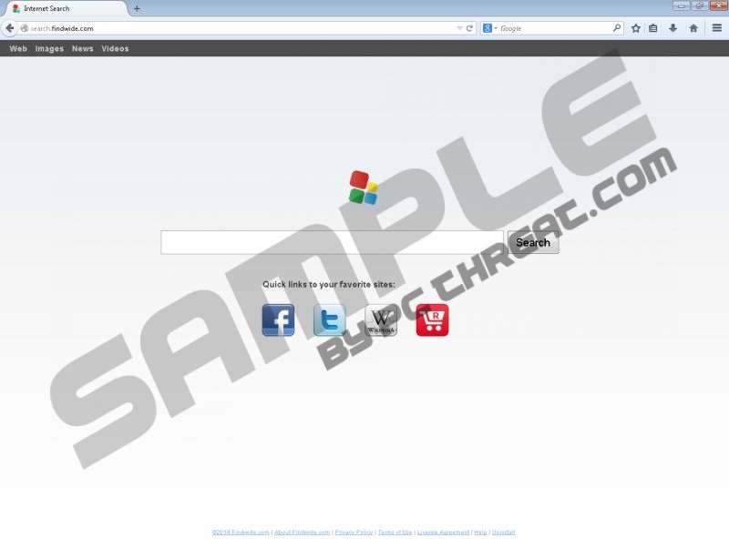 search.findwide.comIf you ever observe that search.findwide.com has altered your default search engine and homepage, it is very probable that you have installed new software on your system. In this case, it is very probable that search.findwide.com is associated with FindWide browser plugin. It is not likely that this software is a typical browser hijacker because you have not noticed the information that your search engine and homepage are going to be replaced yourself. You should install new programs more carefully if you do not want to notice undesirable changes in the future. Unfortunately, these changes tend to affect all the major browsers, including Internet Explorer, Google Chrome, and Mozilla Firefox. Thus, you should delete browser plugin and then get rid of search.findwide.com, if you want to restore the changes. Computer users tend to leave search.findwide.com as their default search engine because it allows them to access various websites (e.g. Facebook, Wikipedia, and Twitter) very quickly. What is more, this search provider offers multisearch service; thus, users are able to search for Images, News, and Videos. Unfortunately, this search engine has some drawbacks as well. The main one is associated with the observation that it might cause harm to the security of your system. No, this search engine is not harmful itself; however, the same cannot be said about all those sponsored links that will be incorporated among decent search results. Even though, most of them are placed under the category “Ads”, less attentive computer users might still click on them and thus be taken to corrupted websites. As it has been mentioned above, search.findwide.com search engine usually comes together with FindWide toolbar. However, you should definitely not trust this piece of software if you have downloaded it from unreliable sources or if it has entered your system without your permission. Keep in mind that plenty of software is distributed with additional programs nowadays; thus, you should be very careful in order not to load your system with those unfamiliar ones. If you want to set back your preferred homepage and search engine, you should get rid of FindWide first and then reset your browsers. The manual removal instructions, which we have provided for you below, will help you to do that; however, do not forget to scan your system with a reliable antimalware scanner, for instance, SpyHunter because not all the elements can be removed manually and there might be other, even more serious, threats hiding on your PC. Search.findwide.com removalWindows XP
