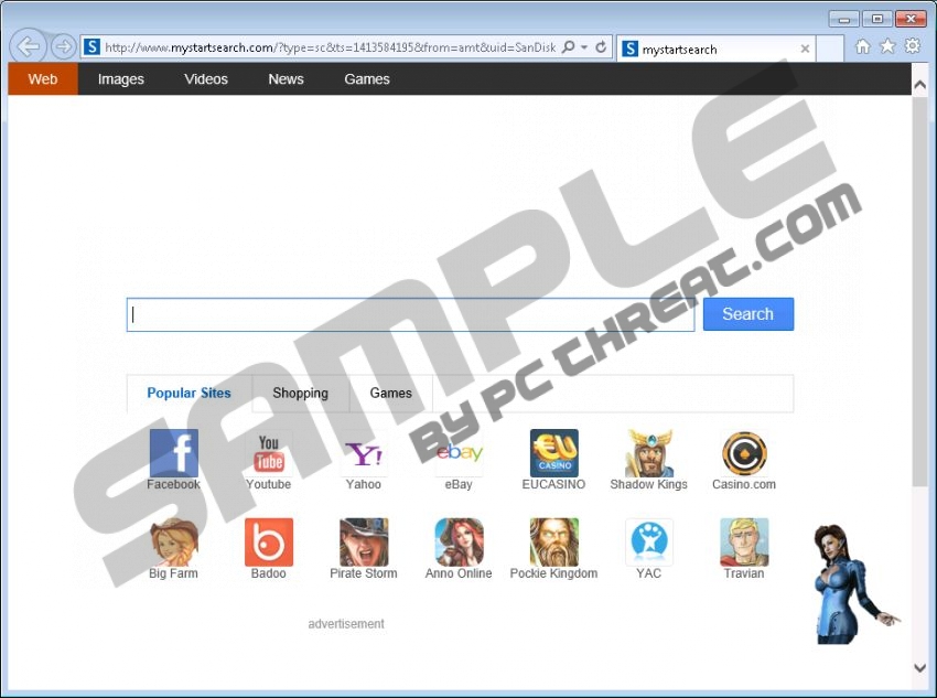 mystartsearch.comIf the home page of your browsers has been changed to mystartsearch.com, you must have confirmed the change yourself. Even though some malware researchers identify the search tool as a browser hijacker, the truth is that it is unlikely to enter the system without authorization. Of course, in some cases the search tool may be presented in a clandestine manner, and you may install it by accident. All you need to do to remove mystartsearch.com from the browsers is follow our comprehensive removal guide. The search engine mystartsearch.com does not seem malicious; however, it certainly does not mimic other, more popular search tools. First of all, the search provider lists a number of easy-access links to third-party websites, like facebook.com, badoo.com and 337.com. Secondly, instead of presenting original search results, mystartsearch.com actually redirects to google.com. Lastly, the search tool presents banner advertisements, and because of all this we recommend having mystartsearch.com deleted. If you do not remove the hijacker, it is likely that you will endanger your own virtual security. Mystartsearch.com comes from the same family as qone8.com, webssearches.com, istart123.com, and other questionable search tools. We have prepared individual removal guides for each one of these programs, and you can find them using the search box on the right. Keep in mind that mystartsearch.com removal is unlikely to be the only task you need to perform. It is quite possible that you will need to delete Quick Start, Fast Start and SupTab extensions. Furthermore, you may need to delete third-party programs which often travel bundled together. The main reason you should delete mystartsearch.com from the system is the unreliable advertising. As our researchers have discovered, you may be introduced to banner and pop-up advertisements presented via suspicious adware servers, like ams1.ib.adnxs.com. Keep in mind that adware servers may enable the presentation of various different parties, and so you should not trust them blindly. Even seemingly alluring offers may turn out to promote unreliable services. If you choose to delete mystartsearch.com manually, you may notice that the program regenerates. This is because of the modified Target. If you follow the removal instructions below carefully, the unwanted search tool will be deleted in no time. If other more disturbing applications are running on the PC, and they might be installed alongside mystartsearch.com, you can leave their removal to authentic and reliable security software. Remove mystartsearch.com from WindowsRemove from Windows 8: