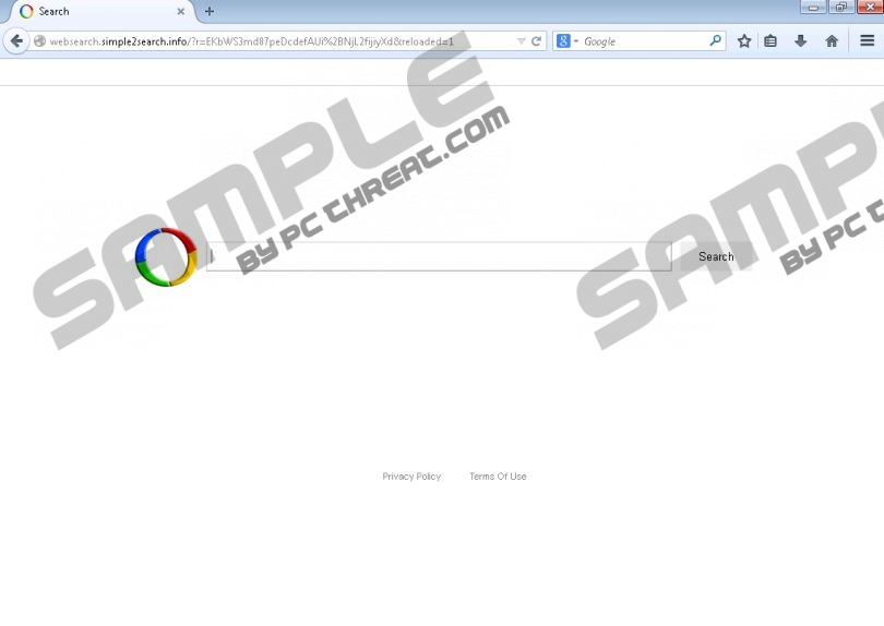 websearch.simple2search.infoWebsearch.simple2search.info is a browser hijacker that alters your home page and search provider and sets its own search page, which is supported by third-party advertisements. Many of the hijackers can also track personal data, while the more aggressive ones may even add bookmarks for pornographic websites and generate pornographic pop-up ads. Therefore, if you want to keep your identity safe and your system secure, you should remove Websearch.simple2search.info from your computer. There is also a chance that you have installed a bunch of unwanted programs and other malware infections with this hijacker. If you would like to learn more about Websearch.simple2search.info and how you can delete it, please read on. The so-called Websearch family of browser hijackers includes loads of clones, such as Websearch.searchandfly.info and Websearch.searchtotal.info. We have already written about how to remove these hijackers, so if you are interested, please, use our search box to find them. These infections are all identical to Websearch.simple2search.info, the only difference is the name. You cannot download Websearch.simple2search.info directly from any website, so if you have this browser hijacker, it has entered your system in a free software bundle. Therefore, it is likely that you can find other threats installed too. In order to eliminate any chances of security breach, you are advised to delete Websearch.simple2search.info along with all other suspicious programs. Another kind of security threat Websearch.simple2search.info might pose is the potentially corrupted third-party ads. This browser hijacker is ad-supported, which means that it generates revenue via the displayed third-party ads and the traffic it can redirect to those sponsored websites. Keep in mind that while a lot of advertisements may be legit and reliable, it is enough to click one fake ad that might lead to a compromised website, and you could infect your system with malware. What‘s more, you might even become the victim of an online marketing scam. If you do not want to end up being exposed to schemers, you should delete Websearch.simple2search.info. Although Websearch.simple2search.info looks like a legitimate search tool – it even has a Google logo look-alike on the left of the search box –, it does not even have its own search engine. This hijacker simply redirects all your searches to Google.com, which makes it a completely useless tool. According to its privacy policy, this hijacker can collect information about the websites you visit, products you buy, links you click, and your IP address, and share it with third-parties. Then it can display you lots of customized ads, which might be potentially dangerous to your privacy or your system. You have most probably realized by now that it is better not to hesitate, and you should remove Websearch.simple2search.info right now. You can manually remove Websearch.simple2search.info via Control Panel and by changing certain settings in your browsers. If you follow our removal guide below, you should be able to delete this browser hijacker in a few minutes. But, even after this removal process you cannot be perfectly sure there are no other leftover components that could harm your PC. Therefore, we recommend that you implement a trustworthy antimalware tool to identify and delete all possible threats from your system. How to remove Websearch.simple2search.info from WindowsWindows XP