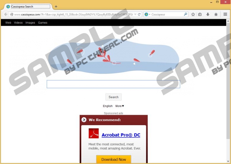 Cassiopesa SearchCassiopesa Search looks like a search provider, but, in reality, it is a tool that can be used to divert you to unreliable websites and expose you to unreliable content. Moreover, this search provider can corrupt your web browsers without your permission, which is one of the reasons to delete it from your browsers. Of course, browser hijackers usually look harmless, which is why you have to use your head when it comes to illegally running programs. The best thing you can do, in this situation, is remove Cassiopesa Search, and the removal tips presented in this report will help you get rid of this threat in no time. As our research has revealed, Cassiopesa Search is the clone of such browser hijackers as Astromenda, Dregol, and Vosteran. These infections are known for installing the open-source browser Chromium, hijacking the home page and default search provider settings, and making it the default web browser. If you have not agreed to install this search tool or the browser, it is most likely that you understand that this software is unreliable and requires removal. Unfortunately, illegal distribution is not the only factor indicating that computer users need to delete Cassiopesa Search. If Cassiopesa Search corrupts your browsers, you will find cassiopesa.com set as the home page and "Cassiopesa" set as the default search provider, and neither of these search tools can be trusted. If you do not delete Cassiopesa Search from your browsers, it is possible that you will be exposed to unreliable content. According to our research, this hijacker uses its web search services to modify your results. On top of that, it is likely that you will see banner and pop-up advertisements suggesting misleading and unreliable offers. As you can imagine, these are the main reasons why you should delete this hijacker ASAP. If you notice suspicious advertisements – similar or identical to the ones shown below – do not click on them because this might lead to the infiltration of other malicious programs that will require removal as well.