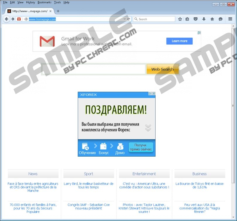 www-homepage.comWww-homepage.com is a tremendously suspicious search provider that was reported taking over web browsers as a hijacker. Even though we have not found this search tool to corrupt browsers, we do not dismiss the possibility of its acting as a browser hijacker. If you are sure that this search tool was installed without your permission, there is no doubt that you need to delete it as soon as possible. In fact, you should remove www-homepage.com even if you have installed it yourself. The reason this search provider deserves removal is that it can introduce you to unreliable search results and show misleading ads. Although it is possible that some users will be introduced to www-homepage.com by a redirect virus, it is most likely that it will replace regular homepage and search provider tools. As mentioned previously, it is unclear whether or not this search provider can hijack browsers, but we are sure that some users might install www-homepage.com by accident. If you download software bundles carelessly, you might agree to install undesirable software without even realizing it. If this happens, you might think that your browsers were attacked by a hijacker that requires removal. Of course, you might install www-homepage.com thinking that it is a legitimate and useful search provider as well. If www-homepage.com replaces your homepage, you will be exposed to suspicious banner ads as soon as you launch your browser. In fact, we recommend deleting www-homepage.com because these ads are completely unpredictable. Our researchers have found that these ads can be shown in different languages, including Russian and English, which is very suspicious. On top of that, the News, Sport, Entertainment, and Business news shown at the bottom are represented in French. Needless to say, this search tool is all over the place, which should make you question it. Unfortunately, www-homepage.com does not provide any official information about itself, which is another reason to delete it from your browsers. Reliable search tools always provide information about themselves. For example, if you moved to the bottom of google.com, you would find links to Privacy and Terms documents. Www-homepage.com does not provide these documents, which means that this search tool is unreliable. Unfortunately, this search tool leads users to the Google Custom Search, which tricks many users into trusting it. Note that the name "Google" is only used to gain your trust, and the search results are unreliable, considering that many of them show sponsored ads. This deceptive behavior is the final reason to remove www-homepage.com. Whether or not www-homepage.com was installed with or without permission, you need to delete this suspicious search tool from your browsers as soon as possible. We have created a removal guide that should help you replace www-homepage.com with the preferred search tools in Chrome, Firefox, and Internet Explorer browsers. Unfortunately, we cannot guarantee that this will be enough to eliminate this potential threat completely. For this reason, we also recommend installing a security tool that, if necessary, will delete www-homepage.com leftovers. Even if you manage to delete this suspicious search tool yourself, make sure you install a legitimate search tool to protect you from malware in the future. www-homepage.com RemovalRemove from Internet Explorer: