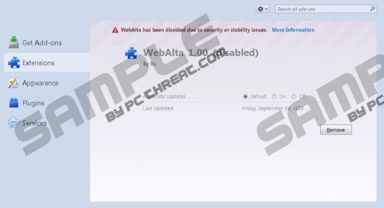 Webalta.ruIf your browser home page changes to Webalta.ru without your permission, your computer may have been infected with a Russian browser hijacker. The presence of this hijacker means that your privacy has been breached; Webalta.ru has made arbitrary changes to your home page and default search engine settings, most probably, in both Internet Explorer and Mozilla Firefox browsers. The sample we have tested did not affect Google Chrome; however, it is possible that other versions do. These setting changes enable this hijacker to expose you and your operating system to potentially unsafe content. Apart from that, it is also likely that there are other threats on your computer that came with this search tool. All in all, you need to delete Webalta.ru from your system as soon as possible, before you are introduced to more serious system security issues. Once Webalta.ru sneaks onto your computer and gets installed, it changes the Target line of the affected browsers’ shortcuts. That way your attempts at restoring your home page settings will be futile. When you launch your browser, it will still display Webalta.ru as your home page. This is a rather pushy method, but, fortunately, you can change it back to default and we will shortly tell you how. Although this is a Russian browser hijacker that is mostly “popular” in Russia, it does not mean you cannot get infected with it. Since this infection mainly spreads in freeware bundles that contain other malware programs as well, it is possible to download it from unreliable file-sharing websites. Therefore, we suggest that you make sure you download software from only reputable websites. Most people do not know that even if they download an infected bundle, they still have a choice to say no to unwanted components. That is why it is advisable to go for Custom or Advanced installation options when offered. If there is no such option, there may be checkboxes to inform you about additional tools to be installed or browser settings changes to be made. It is worth being careful as it can save you from later issues. Deleting Webalta.ru from your system may not solve all your virtual security problems. Therefore, we recommend using a free online malware scanner to figure out about the number of threats that may be on your computer. When you have the results, you had better act soon because having infections on your PC can result in damage to your files or even identity theft. Webalta.ru is a Russian search tool, a website that offers news and quick links to popular websites, such as Facebook, Google+, and YouTube. Unfortunately, it also displays third-party ads, which might redirect you to unsafe websites. Therefore, we advise you to refrain from clicking on these ads if you happen to end up on this site. Another potential threat coming from this hijacker is the search results themselves. Webalta.ru may alter search results pages and insert third-party ads and sponsored links. What is worse, these can be tailored to match your interests. “How is that even possible?” you might ask. Well, this hijacker might collect information about you and your browsing activities and based on its findings, it can make the assumptions what you may be interested in, what products you want to buy, or what online content you want to see more. If you click on a potentially corrupted ad, you might be taken to a malicious website. You should remove Webalta.ru, if you want to stay away from the consequences of such an encounter. If you are ready to win the final battle manually, here is what you have to do. First, you have to remove the application via Control Panel. Second, you have to restore the Target lines of your browser shortcuts. Finally, you have to reset your affected browsers so that all settings go back to default. But even if you follow all the steps below in our instructions, it is possible that some Windows registry entries remain untouched. If you want to make sure that your computer is free of infections, it would be better to use an antimalware program to automatically detect and remove all present threats. How to remove Webalta.ru from WindowsWindows 8, Windows 8.1, and Windows 10