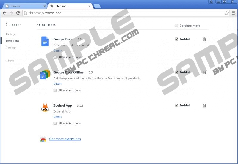 Zquirrel.comAlthough many computer users believe that Zquirrel.com is a browser hijacker, our research team has found that it is an unreliable search provider, at worst. It was found that this search tool is very similar to another suspicious search provider, friendlyerror.com. Unsurprisingly, both of these search tools share the same interface, which is why we believe that they were created by the same company. Despite this, the privacy policies that are associated with these programs are different, and the Privacy Policy at zquirrel.com/privacy?src=search_home reveals that ClickMeIn Technologies Ltd. is the company responsible for the suspicious search tool that we recommend deleting from your browsers. Do you know why you should remove Zquirrel.com? If you have not agreed to change your homepage and search provider to Zquirrel.com, you have to remove a browser hijacker. However, our researchers have found that, in most cases, computer users install this search tool themselves. It is also possible that you will download Zquirrel.com along with the Zquirrel App that is compatible with Google Chrome. This software usually comes packaged with third-party programs that might be even more suspicious and unreliable. If you suspect that you need to delete these programs, we suggest that you do this without further delay. Even if the programs installed along with the search tool or the add-on look harmless, you might have to delete them. Click the Download button below to acquire a free malware scanner that will identify malware if it exists. The suspicious Zquirrel.com does not look much different than other search providers. It offers Web, Images, Videos, and News search tools, but we have found that they either represent the services of Google or Yahoo. Needless to say, both of these search tools are reputable, but that does not mean that you should use Zquirrel.com to access them. This search tool could track your virtual activity and sell the information to unknown parties, and it could inject advertisements. According to research, Zquirrel.com could possibly change DNS settings to show ads, and this is the most important reason to delete this search tool right away. Even if you restore your DNS settings, you should delete Zquirrel.com ASAP. The instructions below show how to reset your browsers to remove Zquirrel.com from your homepage and default search provider. They also show how to delete Zquirrel App from Google Chrome. As you know, you cannot just uninstall this program to eliminate it. Fortunately, resetting your browsers is just as simple if you know which steps to take. Additionally, we have created a guide that will help you restore your DNS settings. If you follow the steps provided, the unreliable search tool should be eliminated. Unfortunately, we cannot guarantee that all traces will be removed successfully, which is why installing automated removal software is imperative. If you have questions about Zquirrel.com or its removal, you can contact us using the comment section below. Our virtual security experts will help you solve all of your problems as soon as possible. Zquirrel.com RemovalRemove from Google Chrome:
