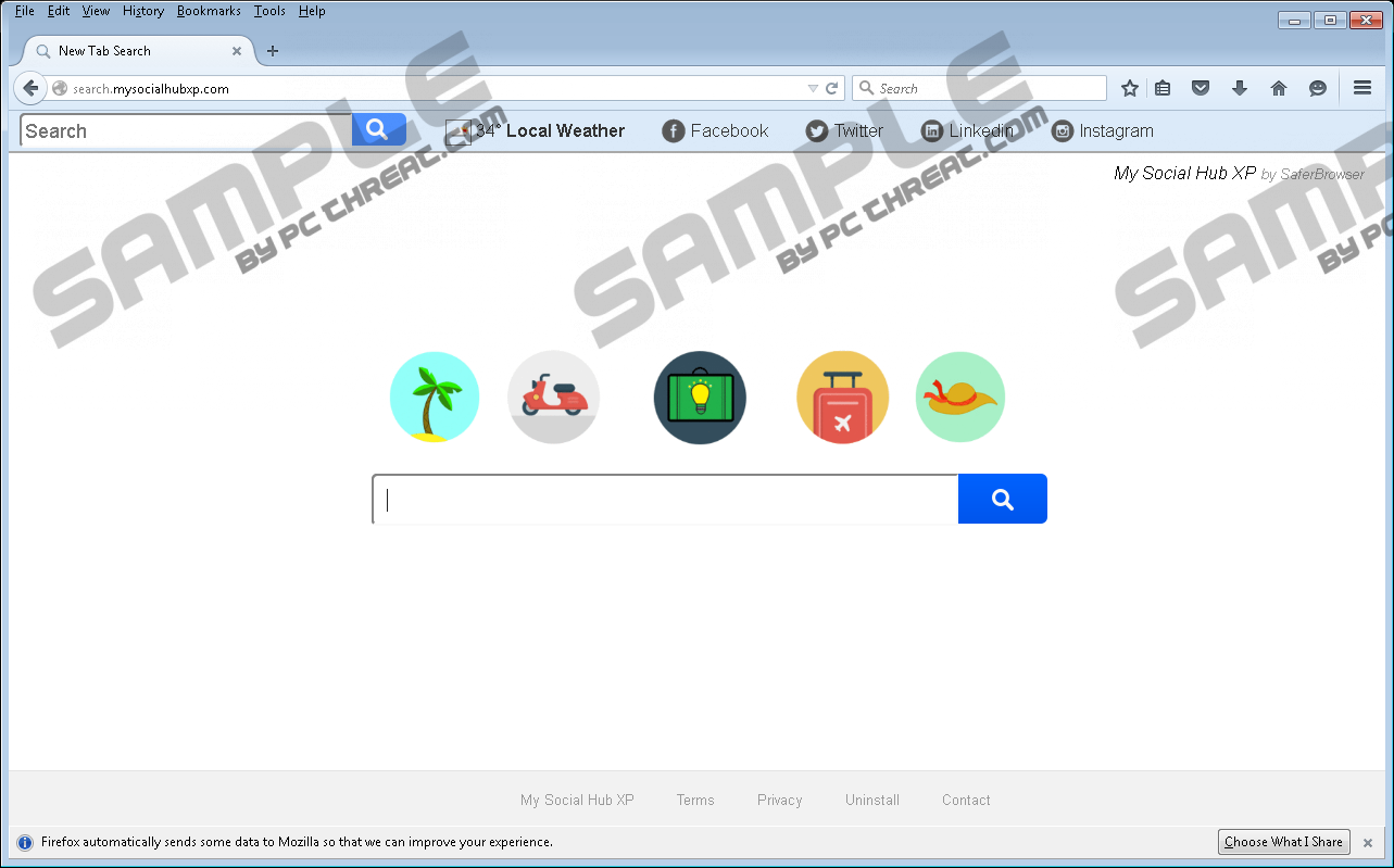 Search.MySocialHubXp.comSearch.MySocialHubXp.com is yet another browser hijacker aimed at modifying your browser’s settings to make you use it for performing online searches. Thus, you might want to remove it from your system. We have classified it as a browser hijacker because it is distributed via software bundles that install this hijacker without your knowledge or permission. However, the reason it is distributed in such a dishonest fashion is money. Indeed. Search.MySocialHubXp.com’s search results contain a lot of promotional links and advertisements that come from numerous sources. However, some of those sources are bound to be malicious and subject you to malicious content that can wreak havoc on your PC if you access or download it. If you want more in-depth information about this infection, please read this whole description. As stated in this hijacker’s description, SaferBrowser is its indicated developer. However, there is no information about this developer anywhere, so we suspect that it is a bogus name. Nevertheless, this name has helped us link several other hijackers to this newest one. Therefore, we would like to mention several of SaferBrowser’s prior releases that include Search.mytelevisionxp.com, Search.youremailcenter.com, and Search.youronlinegameplay.com. All of these browser hijackers function in a similar fashion, and the reason for their quantity is to avoid detection by anti-malware programs as each new release in undetectable until its database is updated. Of course, they can share generic items, such as the browser extension for Firefox, Internet Explorer, and Chrome. The browser extension Search.MySocialHubXp.com comes with is called My Social Hub XP. You can get this extension from several different sources. The first one is very popular among Chrome users since you can download it straight from the Chrome Web Store. According to this store’s information, more than 29,000 Chrome users have this browser hijacker installed on their systems. However, you can get it for all three browsers from it dedicated distribution website at Mysocialhubxp.com which promotes faster and easier access to your social network accounts that this hijacker is supposed to provide. Regardless, the last known Search.MySocialHubXp.com’s distribution method is software bundles. Malicious software bundles can infect your computer with this hijacker without your knowledge as it is automatically installed along with other content. As mentioned, this hijacker is promoted as a search engine that also offers you easy access to your favorite social network websites in the form of bookmarks. The fact of the matter is that you can create bookmarks to those websites yourself as all three supported browsers have this function. In truth, this hijacker’s purpose is to generate advertising revenue, and this is achieved by hijacking the search provider of Chrome, Firefox, and Internet Explorer, and the homepage of the two latter browsers. It also changes Chrome’s new tab page as it does not have a default homepage. As far as Search.MySocialHubXp.com’s search function goes, it can be said that it is not that terrible. However, you should know that this alleged search engine redirects all of its search queries to Yahoo.com, but not before it redirects them to Extsearch.maxwebsearch.com to be injected with advertisements and promotional links. These promotions and ads should appear on the search engine window’s right site but may also be placed at the very top, before the real search result start. This hijacker’s Terms of Use state that “My Social Hub XP collects search query information. Such search query information could be used to serve relevant ads to you and/or to monitor the performance of the search services.“ We also want to mention that it collects certain information about you. So it can obtain information such as browser type, operating system type, Internet protocol (IP) address and information about the version of any software comprising a portion of the services that you use, geographic location and the domain name of your Internet service provider (ISP,) visited websites, and search queries. All of this information is used to show you more relevant advertisements to increase advertising revenue. However, this search engine is far from safe, so you should get rid of it. If you want to get rid of this infection, then there a few things you should know. You have to uninstall it via Control Panel first, and only then remove it from the browser. Note that you do not need to delete it from Internet Explorer as uninstalling from Control Panel is sufficient. Please consult the instructions provided below for more information on Search.MySocialHubXp.com’s removal. How to uninstall this browser hijacker from your PCWindows 10
