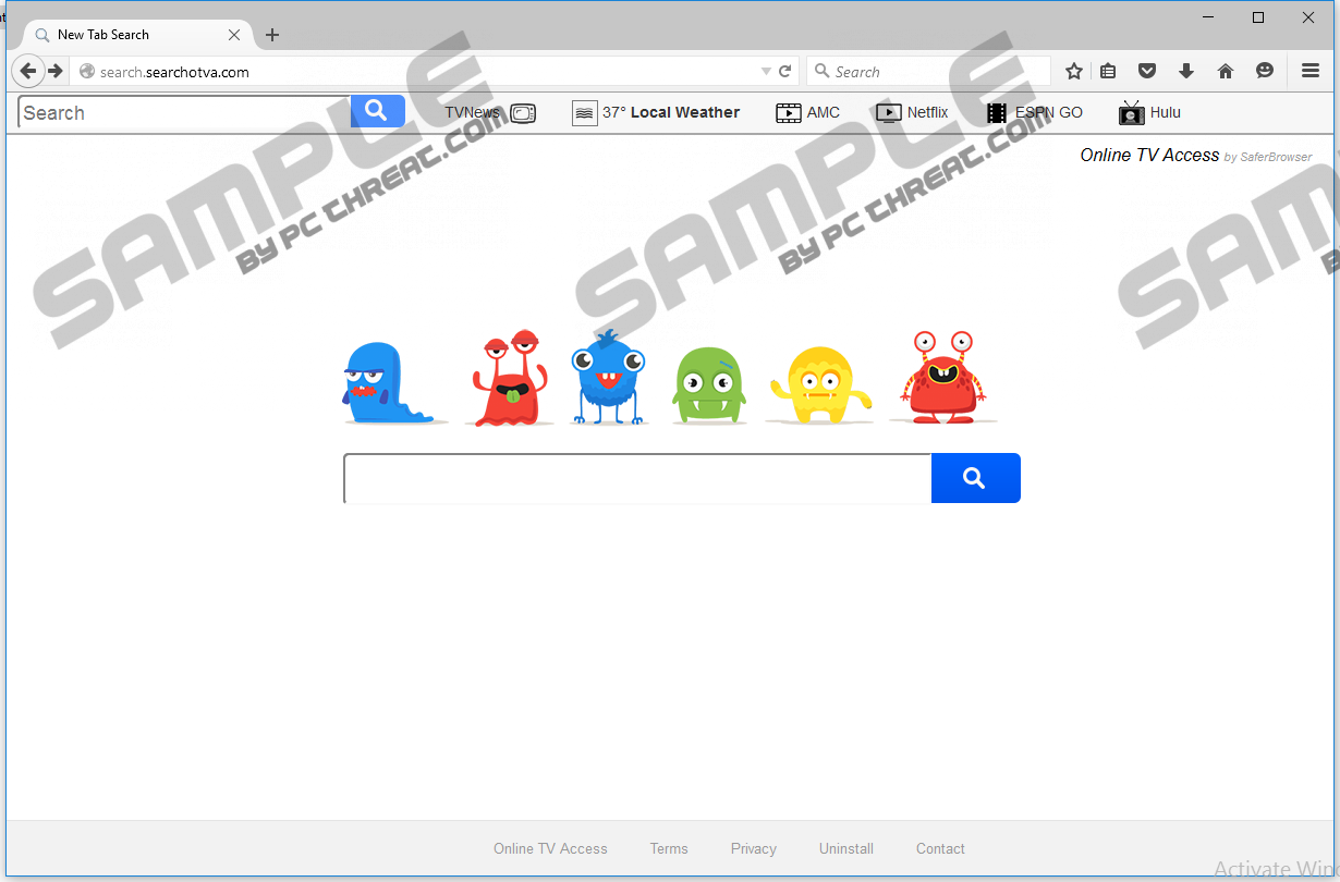 Search.searchotva.comDo you believe Search.searchotva.com to be a regular search provider? According to our research, this “regular provider” is actually a browser hijacker that must be removed from your browsers as soon as possible. Some browsers block direct access to this search provider; however, it would not corrupt your browsers if you visited it. In order to take over your browsers, this hijacker has to be installed first. We have found several different ways for this program to enter your operating system. It can be downloaded along with the Online TV Access by SaferBrowser extension available at onlinetvaccess.com. The installer of this infection can also be attached to software bundles. If the hijacker has followed the extension, it is unlikely that you will need to eliminate many other threats besides the extension. However, if it was installed by a third-party software distributor, it is likely that you will have to worry about other malicious infections after you remove Search.searchotva.com. Online TV Access by SaferBrowser is an extension that promotes easy-access links to TVNews, Local Weather, AMC, Netflix, ESPN GO, and Hulu. This extension is very similar to Your Interests Now, My Radio XP, Easy Sports Access, and other extensions that travel bundled with such malicious browser hijackers as Search.myradioxp.com, Search.yourinterestscenter.com, and Search.easysportsaccess.com. As you can guess, these hijackers are identical to the malicious Search.searchotva.com. The only difference is that this hijacker does not reveal the name of the extension it is associated with. Due to this, there is a possibility that this hijacker could be linked to a different add-on in the future. For now, it is Online TV Access. According to our research, users can acquire this suspicious extension from chrome.google.com/webstore/detail/online-tv-access/acmbkdcplacpdifblbmlghndlegnbiha as well. Note that the random collection of letters in this URL, acmbkdcplacpdifblbmlghndlegnbiha, reveals the Chrome ID. This is also the name of the folder that holds the components of the Chrome extension. The files representing Internet Explorer and Mozilla Firefox extensions are Online TV Access_settings.json and tv@jetpack.xpi, respectively. While the suspicious extension offers links to seemingly legitimate sites, Search.searchotva.com is completely useless. This hijacker is even incapable of providing regular search results. Instead, it will redirect you to search.yahoo.com and show sponsored links. Unfortunately, because the name of Yahoo is well-known and respected, many users will trust the results shown without any hesitation. As you might know, modified search results could be used to introduce you to links created by cyber criminals and malicious advertisers. That is not all that this unreliable hijacker is capable of. The Privacy Policy statement at Search.searchotva.com clearly states that personally identifiable information can be collected. That is something to be concerned about because this hijacker is unpredictable, and it is likely to share information with untrustworthy parties. If you do not take care of your private information, soon enough you could suffer identity theft, and your own name could be used to spread malware to other systems, primarily to those of your friends. You must delete Search.searchotva.com from your browsers and your PC, and the only question left is in regards of how you should do it. In some cases, the hijacker is disabled with the elimination of the extension. Even in this case, it is likely that you will find leftovers that also require removal. We have created a straightforward removal guide that will show you how to eliminate all components and change the homepage that this infection is capable of modifying. If you are confused about any of the steps, you can contact us by leaving a comment below. Our objective is to help you, and we cannot do that if you do not specify your problems. Hopefully, our tips will help you eliminate this hijacker successfully. Unfortunately, we know for a fact that this guide will be useless if you are trying to delete other malicious programs. And these programs might have invaded your PC along with the hijacker. Needless to say, automated malware removal software is most efficient when it comes to the removal of these additional threats, or even Search.searchotva.com itself. Search.searchotva.com RemovalInternet Explorer: