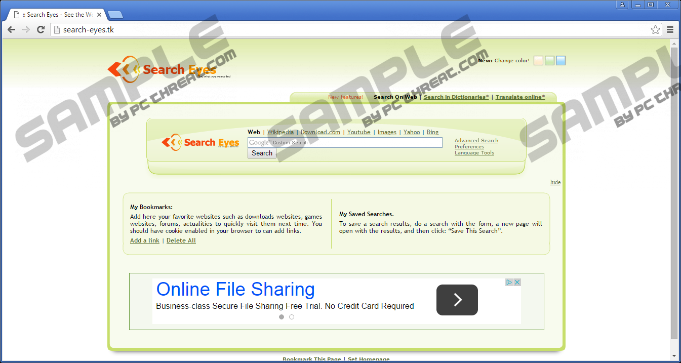 Search-eyes.tkSearch-eyes.tk is a questionable search engine that gets installed by a browser hijacker silently, i.e., without your consent and knowledge. This is an obvious act against your privacy and therefore also illegal. That is usually just enough reason for a security-minded computer user to remove Search-eyes.tk from the computer. However, this hijacker may also pose a threat to your system security by displaying potentially unreliable third-party advertisements on its main page. To our greatest surprise, this browser hijacker seems to present you with legitimate search results and not manipulated ones as we are used to in such cases. But do not get too excited because the presence of this search engine in your browsers is still a risk factor. What’s more, it is possible that there are other malware infections on your computer as well. Therefore, it is important for you not to hesitate to act. You should remove Search-eyes.tk and all other potentially harmful applications in order to secure your operating system and your virtual world. Leaving malware threats on board is like sleeping with a “time bomb” under your pillow. Let us tell you how this infection can infiltrate your system and its potential risks as well as how you can solve this situation. We have found that this browser hijacker is mostly spreading in the non-western parts of the world, such as Algeria, Egypt, Indonesia, Thailand, and Saudi Arabia. It possible to get infected silently with this browser hijacker if your computer has already been infected with another hijacker called Globasearch.com that redirects your browser to Search-eyes.tk. This other hijacker can also redirect you to safe-web.tk, bingoweb.ga, and uppersearch.tk among other questionable search engines. Globasearch.com can be installed through malicious downloaders, which means that it may come on board with other malware infections. These downloaders may use one of these servers: extrahosted.com, directhosted.org, and softdistribute.com, which host potentially harmful programs. You need to be very careful when visiting questionable file-sharing websites, including pornographic, torrent, and shareware pages, because it is easy to click on something shady on such pages, like an advertisement, for example, and end up with a whole bunch of malicious programs on your computer such as these hijackers. If this ever happens to you, you should know that usually there is still an opportunity for you to opt out of the installation of unwanted elements if you view the steps of the installation wizard carefully. Most of the browser hijackers, for instance, can be stopped at this point from entering your browsers if you untick the designated checkboxes. It is possible that these are only revealed if you choose the advanced or custom options. If you let the whole package on board, you need to know that you will have to scan your system for other threats after you delete Search-eyes.tk. You should be careful with this unreliable search engine because it may display potentially unsafe third-party ads on its main page. Clicking on such ads is not advisable since you can never know where you might end up. If you are taken to a malicious website, it is possible that you will be scammed to download more infections or even to disclose personal or banking data. In all fairness, we have to mention that, strange as it is, but this hijacker does not seem to modify the search results and it actually shows proper custom Google search results pages. For example, if your keyword is “shopping,” this is the URL you will be redirected to cse.google.lt/cse?cx=partner-pub-3100953325370427:5451885597&ie=UTF-8&q=shopping&sa=Search&ref=search-eyes.tk/%3Fclr%3D2&gws_rd=cr&ei=i1rMVuWsCMGusQHr7oyAAg#gsc.tab=0. Still, the question remains: “Why on earth would you need a potentially unreliable mediator when you can directly use Google?” All in all, we do not think that it is safe to keep this annoying and stealthy browser hijacker on your computer. We advise you not to hesitate to remove Search-eyes.tk if you want to keep your computer clean. In order to say goodbye to this useless invader, we recommend that you reset all your major browsers because this way there will be no leftovers. If you have never done this before, please follow our instructions below. Since this browser hijacker may not be the only threat your operating system is struggling with, we suggest that you install a proper anti-malware tool that not only will eliminate all the present infections, but it will also safeguard your PC from future malware attacks. How to remove Search-eyes.tkGoogle Chrome