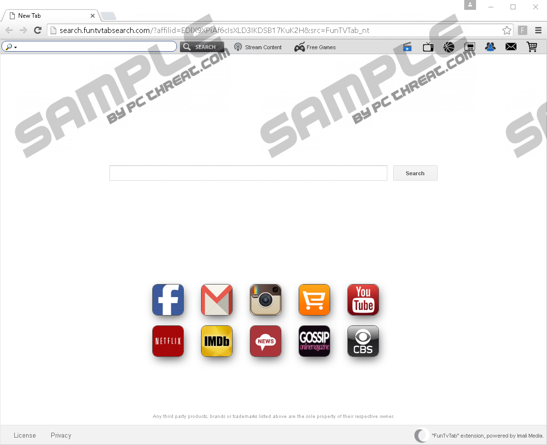 FunTVTabWhy did you install FunTVTab onto your computer? Was it because this program promised you to show full episodes of your favorite TV shows for free? Although it might appear as if this program provides you with free services, we have found that the links it promotes actually route to websites that require subscription and payments, including Netflix and Amazon. Sure, this program is free to install, but it will not help you watch paid content for free, if that is what you were hoping. So, if you had hoped that this app would turn your browser into a free media center and would help you stream TV directly from your PC, you must be disappointed. Well, this is not the only reason to remove FunTVTab from your operating system. If you have downloaded FunTVTab from its official website, funtvtab.com, or the Chrome web store, it is unlikely that you are dealing with additional unwanted programs. However, if you have trusted an unreliable third-party installer to let this suspicious program in, you might find other suspicious and even malicious programs on your operating system. Although we do not want to focus on third-party malware within this report, we want to warn you that it could be extremely harmful, and you should not ignore it. In fact, if more malicious threats are active, you should postpone the removal of FunTVTab to get rid of these threats first. Having said that, this potentially unwanted program deserves your attention as well because it can initiate activity you might be completely unaware of. You probably knew about the modifications regarding your browsers when installing FunTVTab. It is stated that this program can change new tab and default search settings on Firefox and Chrome browsers, the ones that the program is compatible with itself. Search.funtvtabsearch.com is the search tool that this program is associated with, and it is identical to the infamous Search.realcoolmoviessearch.com. It is also similar to Search.searchinsocial.com, Search.emaildefendsearch.com, and various other suspicious search tools that are associated with specific browser extensions. IMALI - N.I. MEDIA LTD is the developer of this software, and it is well-known for developing potentially unwanted programs, adware, and hijackers; all of the programs you do not want on your operating system. Although this software might introduce you to some beneficial services, our researchers warn that the underlying activity of this software is not as transparent and not as beneficial for you personally. When you enter keywords into the search tool provided by FunTVTab, search.funtvtabsearch.com, you are redirected to a third-party page. Although this potentially unwanted program shows the search results using the popular Yahoo Search engine, you must keep in mind that they could be adjusted to show the links that IMALI Media wants you to see. If you have reviewed the Privacy Policy, you know that this company works with third-party advertisers, and the search tool is the main platform that is used to showcase these ads. Note that money is earned if you interact with the ads shown to you, and, in some cases, the content of the ads is not important as long as you interact with them and generate a profit. Of course, this is one of the most important reasons to delete this software from your PC. It is also important to erase this software to stop the collection of data. Although personal data is not collected by IMALI Media, your browsing history and information regarding your browsers could be used to design more attractive offers. If you think that all attractive offers are reliable, you are wrong. Do you have experience erasing unwanted Chrome or Firefox extensions? If you do, you should have no trouble deleting FunTVTab. The guide we have created shows how to erase these unwanted extensions from your computer, rather than the browser, and we advise following these steps to learn where these extensions lay, and what kinds of components represent them. This is an important skill to have in case you have to face unwanted extensions in the future. Of course, every threat is unique, and you might have to approach the removal process in a different way every time. You need to keep this in mind if other threats are active on your operating system at this moment. If you cannot handle them manually, install a trusted malware remover that will be able to erase them all automatically. FunTVTab Removal