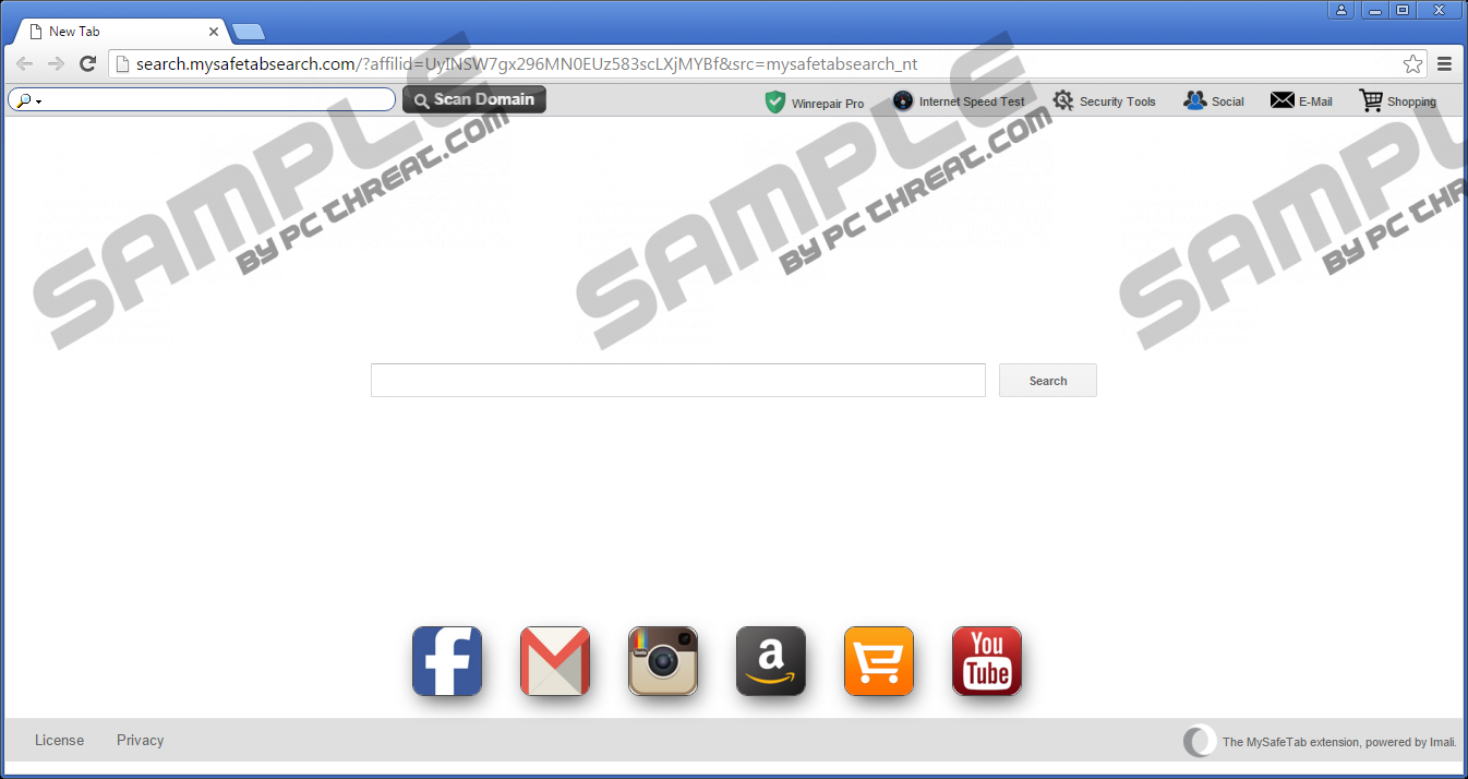 Search.mysafetabsearch.comDuring the past week, we have noticed an increase in browser hijacker releases by one malware developer in particular. Imali Media Ltd is at it again, and its newest browser hijacker is Search.mysafetabsearch.com. It is recommended that you remove it from your browser because of the obvious fact that it replaces your browser’s new tab page or homepage without your authorization and because its search results are bound to include promotional links that can pose a threat to your computer’s security. If you take your online security seriously, then we suggest reading this whole article and taking action against this intrusive infection. Since this browser hijacker comes from Imali Media Ltd it comes as no surprise that it comes with browser extension, and in this particular case, it comes with an add-on called MySafeTab that is compatible with Google Chrome and Mozilla Firefox. Search.mysafetabsearch.com is an integral part of this browser extension because it is nothing without this hijacker. MySafeTab is dedicated to modifying your browser’s settings and hijacking its search-related settings, namely the homepage address or new tab page. You can download this extension from its main distribution channel which is a dedicated website at http://mysafetab.com. This website is used to convince users that it is a useful extension that will provide you with security tools and make your browsing as secure as possible. However, this claim is false as this extension does not add any security measures to protect your browser. It is important to note that this hijacker features a link to Reimageplus.com, a website that hosts the download of Reimage, a potentially unwanted program that you ought to uninstall. It also features links to other shady applications legitimate social media websites. Furthermore, you can get MySafeTab for Chrome from the Chrome Web Store. Indeed, the store features it, and it is widely available for to use. Hence, that it is why this hijacker is getting so popular at the moment. When you install MySafeTab on Chrome or Firefox, it will inject Search.mysafetabsearch.com to the browsers and replace the new tab page or homepage respectively. The extension does not warn about changing your browser’s settings, and that is the main reason we have classified it as a browser hijacker. Neither the extension nor the fake search engine gives any mention about the promotional links that are injected into the search results. The License agreement provided in this browser hijacker states the following:
