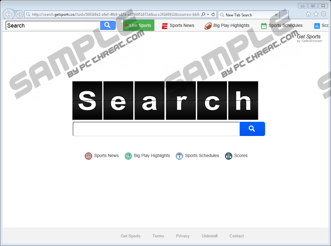 Search.getsports.coWe want to present you one of the newest browser hijackers to have come from the SaferBrowser browser hijacker family. If you value your online security, then you should remove Search.getsports.co because it definitely will not improve your browsing experience. On the contrary, it can only increase the possibility for you to encounter malicious websites because it is set to promote such sites in its search results. Furthermore, this shady search engine is configured to collect information about you. Although anonymous, this information is used to customize the promotional campaign and generate more advertising revenue as a result. To find out more about this hijacker, we invite you to read this full description. Like many browser hijackers’s those that are a part of the SaferBrowser hijacker family have been set up for only one purpose — to generate advertising revenue. This developer’s search engines are distributed in a manner that is utmost despicable. We have discovered that ad-supported applications are being configured to promote Search.getsports.co and the various other SaferBrowser hijackers such as Search.searchglnn.com, Search.gomaps.co, and Search.mynewswire.co using pop-up advertising. Hence, intrusive pop-ups are set to appear while you are browsing the Internet and promote an application that will enable you to view sports-related content, highlights, scores, updates, news, and so on. If you click to download this extension, then your browser’s homepage setting will be changed to Search.getsports.co. This browser extension is called GetSports on Internet Explorer, Sports on Firefox, and Get Sports on Chrome, and its only objective is to interact with your browser and replace its homepage address to Search.getsports.co. We also want to note that you can download this extension from its dedicated distribution website at Getsports.co/Sports? Which allows you to deselect the placing of this hijacker as the homepage address, so we do not consider Getsports.co/Sports? as a malicious distribution channel. However, there is much more to Search.getsports.co than its deceptive distribution. Being a search engine it can be used for searching the Internet, but be warned that by using it, you can encounter shady promotional links that are set to be featured at the bottom of the search results page. Moreover, it does not have its own unique search algorithm, so SaferBrowser has opted to make use of Yahoo.com to which all of your entered search queries are redirected. So, effectively, you are using Yahoo.com and not Search.getsports.co. Nevertheless, Yahoo’s custom search results can be altered to include additional links that can redirect you to malicious websites that feature malware downloads and possibly other malicious content. Apart from showing you advertisements in its search results, Search.getsports.co is also set to collect information anonymous information about you automatically. According to the Privacy Policy, it is set to collect information that includes but is not limited to Internet Protocol (IP) address, geographic location, Internet service provider (ISP), browsing history, entered search queries, and so on. This information might not look like much, but it is very valuable to this hijacker’s developers because they use it to determine your preferences and interest. With the help of this information, they can customize and personalize the advertising campaign for each unique user, but they do not do that for the benefit of the user, but you make more money. In conclusion, Search.getsports.co is a browser hijacker that is set to replace your browser’s homepage address in order to force you to use it for searching the web. If you do it, then it will show you promotional links in its search results and there is no telling whether they are legitimate and safe to enter. Therefore, we highly recommend that you remove it from your computer as soon as possible. How to uninstall GetSportsWindows 10