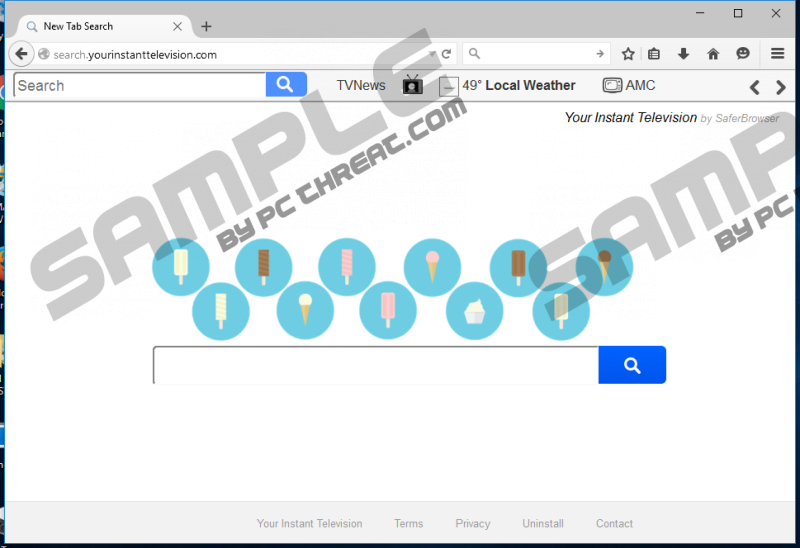 Search.yourinstanttelevision.comSearch.yourinstanttelevision.com is a search engine that might be set as your homepage and New Tab page one day. If this has already happened, we can assure you that a browser hijacker has entered your computer. Search.yourinstanttelevision.com usually affects Internet Explorer and Mozilla Firefox browsers only, so it will soon become clear for you that a browser hijacker has found a way to enter the computer if you use any of these browsers. Some users do not even notice that their homepages and New Tab URLs have been altered; however, many people immediately notice that changes have been applied to their browsers without their permission and decide to get rid of Search.yourinstanttelevision.com. To be frank, we are glad that people decide not to use this SafeBrowser product because it cannot be called reliable since it is capable of causing redirections to websites that might be harmful. We cannot say that it will be easy to remove Search.yourinstanttelevision.com from browsers and thus protect the computer from dangers, but you must eliminate it as soon as possible if you wish your system not to be exposed to danger. It seems that Search.yourinstanttelevision.com is mainly targeted at those users who watch television because there is a bar with buttons leading to such popular websites as amc.com, netflix.com, espn.com, and hulu.com at the top of its start page. What else makes it look like a reliable search engine is a search box in the middle of the page. If you enter a search query, you will be immediately provided with search results; however, it does not mean that it is safe to use this search engine. There are two reasons specialists suggest getting rid of Search.yourinstanttelevision.com. First, it has been found that this search tool shows modified search results. In other words, you might find advertisements on the same page as decent search results. These ads might look exactly like those ordinary search results that are trustworthy; however, they differ from those reliable ones greatly in a sense that they might promote untrustworthy web pages and thus redirect users to them in no time. Something else we can say about Search.yourinstanttelevision.com is that it can collect information about users. It seeks to find out about their interests, activities, and the overall web-browsing behavior. Therefore, it will record such details as search queries, ads and links clicked, the time of browsing, IP address, browser type, and a bunch of other details. All these details are said to be non-personally identifiable information; however, you will find one sentence in the Privacy Policy document saying that search queries might contain personal data too if you have ever submitted the personal information yourself. In other words, your privacy might be violated if you have entered something personal in the search box of Search.yourinstanttelevision.com. To protect your computer and your privacy from dangers associated with the presence of Search.yourinstanttelevision.com, you should get rid of this search tool as soon as possible. It is already known how such questionable search tools as Search.yourinstanttelevision.com are distributed. Recent research has revealed that such search engines are often set on browsers the second users click on ads promoting them. In most cases, these ads are shown by adware. You might not even know that there is an ad-supported application installed on your computer for a long time; however, if you see irritating advertisements on your screen or on decent websites from time to time, it is very likely that an advertising-supported program is installed on the computer and works in the background. You need to remove it from your PC too if you do not want to see ads anymore. If you do not think that you can detect and delete it by yourself, use an automatic malware remover. To quickly remove Search.yourinstanttelevision.com from the browsers it has affected, you should reset browsers to their default settings. You can remove the browser extension and then set another homepage and the New Tab URL yourself too, but it will definitely take more time to do that. If none of these methods seem to be very appealing, you should know that you can get rid of Search.yourinstanttelevision.com with the help of an automatic malware remover SpyHunter as well. Of course, you will have to install it on your computer first. Delete Search.yourinstanttelevision.comInternet Explorer