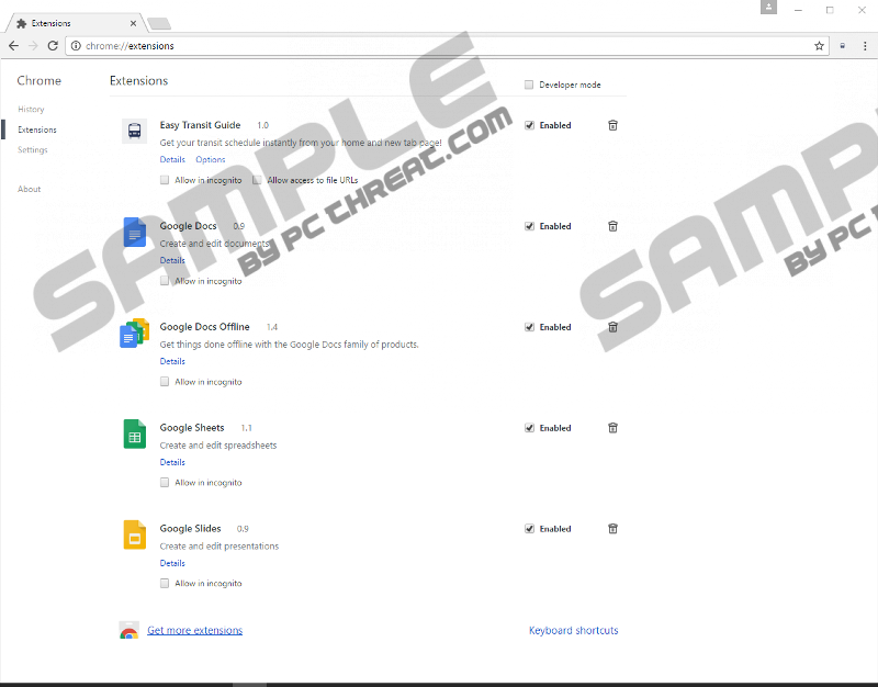 Search.searchetg.comSearch.searchetg.com is not a unique search provider. In fact, it is identical to Search.mygamesxp.com, Search.myspeedtestxp.com, Search.MyTelevisionXp.com, and tons of other search tools. Even the “Search” logo in the middle is the same in every case. Were these search tools created by the same company? This is very possible considering that all of them are represented via extensions created by SaferBrowser. In our case, the extension is called “Easy Transit Guide,” and it is officially promoted at easytransitguide.com. Whether you have installed this extension via Chrome, Firefox, or IE, we can show you how to delete the hijacker quickly and effortlessly. If you are still not sure as to why you should remove Search.searchetg.com from your browsers, you need to continue reading. Easy Transit Guide is an extension that should provide you with directions, maps, and schedules. The official download page suggests that this tool allows you to search for routes and public transport schedules completely for free. When you download the program, depending on the browser you use, you might be asked to modify search settings. For example, if you use Mozilla Firefox, you will be forced to set searchetg.com as your homepage and default search provider. Google Chrome users, on the other hand, will not be informed about the search tool at all. The installer will simply warn that the extension can read and change data, as well as manage apps, extensions, and themes. Of course, when you install the extension and re-launch your browser, you will discover that your New Tab represents an unfamiliar search tool. Whether you are forced or tricked into acquiring the search tool, you must realize why we classify it as a browser hijacker. Such activity is a reason to delete it from your browsers. It would be unfair to say that Search.searchetg.com is completely useless. The quick-access links that this hijacker represents route to get.uber.com, kayak.com, and expedia.com/Cars, all of which are legit websites. The “Local Weather” link is a bit more suspicious. When you click it, you will be routed to a page that automatically determines your location to provide you with a relevant weather forecast. This page includes banner advertisements, and we do not recommend clicking on them. Overall, the most interesting feature of the hijacker is the “Search” tool. By entering keywords into the search box, you will initiate redirecting to search.yahoo.com. This is a legitimate search provider that thousands of users employ every single day. So, what is wrong with this? First of all, you cannot ignore unauthorized redirecting. This just proves that the hijacker can do whatever it wants. Second, as our research team warns, the results shown could be modified by the hijacker, which makes them unpredictable. One last thing you need to know about Search.searchetg.com is that this hijacker can be dangerous in a silent way. It silently installs tracking cookies to record data. Normally, tracking cookies are not malicious, but, in some cases, they can be used in intrusive ways. For example, this hijacker can use the cookies to record information that might include personally identifiable information. Even worse, unknown third parties might have access to this information. The Privacy Policy available for you at search.searchetg.com/home/privacy has this information highlighted (all in caps), which means that it rejects all responsibility for the outcome. After all, you choose to accept the Privacy Policy as soon as you click the Install button, and it is on you if you have failed to review the document. Hopefully, it is not too late for you to erase the hijacker and delete the cookies associated with it. There are plenty of different methods that you can employ to delete Search.searchetg.com from your browsers. Even if you choose to erase this hijacker manually, you have several different options. For example, you can follow the guide below, or you can erase extensions (on Firefox and Chrome) and uninstall apps (for Internet Explorer users). If you are smart, you will also think about third-party malware that might be active on the PC or that might attack it in the future. In that case, the best option is installing anti-malware software. If you are having issues with any of the options you have chosen, or you have questions about other things, do not hesitate to start a discussion below. Search.searchetg.com RemovalInternet Explorer: