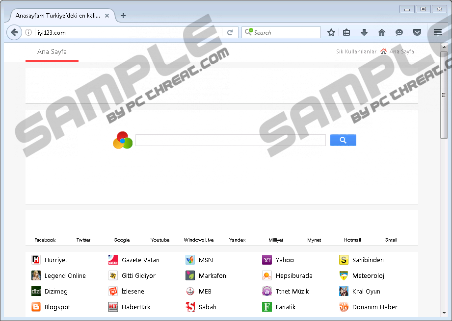 Iyi123.comIyi123.com does not look like a regular search provider. It looks more like an interactive page that provides users with a ton of easy-access links, as well as a search dialog box. At this moment, the search tool does not work, and no results are produced. Even if search results were provided to you, you would have to be exceptionally cautious because this search tool is truly unpredictable. Overall, the greatest reason to remove Iyi123.com from the browsers is that it is capable of hijacking the homepages and default search providers on such popular web browsers as Google Chrome, Internet Explorer, or Mozilla Firefox. Even if you agreed to modify the homepage yourself, we still classify this suspicious tool as a browser hijacker. Learn how to delete it and why that is important by reading this report. As you probably know already, Iyi123.com is targeted at those who speak Turkish. The language used on the interface is Turkish, and all legal information is represented in this language as well. Speaking of the interface, it displays many quick-access links, including popular and less known sites. You can find links routing to Facebook, Twitter, YouTube, Hotmail, Gmail, and other sites. At the same time, you find links to gaming sites, such as oyunskor.com, TV sites, such as trt.net.tr/televizyon/, and other websites that are relevant only for the users living in Turkey. Are all links reliable? Unfortunately, it is possible that some of the links will expose you to suspicious, potentially unreliable content, and that is why you have to be very cautious about the links you interact with. At the bottom of the page, you can see a bunch of links to pages that were set up to represent the search tool, as well as its creators. For example, the “İletişim” link represents contact@iyi123.com, a contact email that should help you communicate with the creator of the hijacker. Unfortunately, the “Şartlar ve Koşullar” link opens an empty page, which means that you cannot learn everything about this hijacker. Fortunately, we have access to the license agreement, as well as the privacy policy. According to these statements, Iyi123.com uses tracking cookies, but it does not use them to record personally identifiable information without your notice, which, of course, is a huge relief. Of course, if you choose to reveal this information yourself, it is likely to be recorded, so be careful about what kind of information you share. Are other infections active on your PC along with Iyi123.com? It is very possible that they are in case this hijacker was introduced to you via a malicious software installer. Such installers are usually set up by devious software distributors who earn money for every install, which is exactly why they bundled multiple programs together. Of course, the chances of other malicious threats being packaged along with the hijacker are high. If you are unable to identify threats yourself – and that might be difficult, considering that malware is usually concealed – you should download a tool that will do that for you; i.e., a malware scanner. Once you know which threats are active on your operating system, you will be able to take appropriate action. For example, if you discover dangerous threats, it is unlikely that you will choose to proceed with manual removal. The instructions below reveal how to change homepage and default search provider settings. According to our research, this should be enough to delete Iyi123.com from your browsers successfully. Of course, it would be wise to scan your PC afterward just to check that it is clean. Obviously, you also have to think about third-party malware that might exist on your operating system. If it does, you should think if manual removal is the right option for you. Maybe it is best to install automated malware detection and removal software that will automatically find and erase all threats, including the hijacker? If that is the option you choose, make sure you employ a trusted and up-to-date anti-malware tool, not some bogus tool that might have been created by cyber criminals to scam you. Iyi123.com RemovalInternet Explorer: