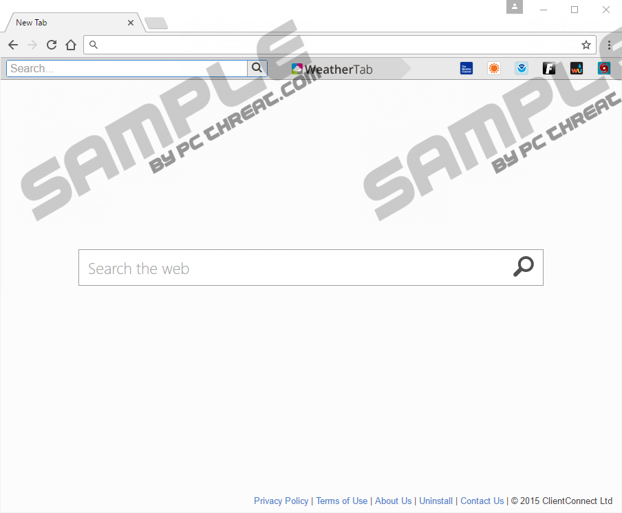 WeatherTab by ClientConnectWeatherTab by ClientConnect is not a program that can be considered trustworthy as it has been found to be just one more browser hijacker. It goes without saying that we urge you to remove this devious application if it is ever found up and running on your operating system. It is critical to do so since the invasive program in question can make unwanted changes to your web browser's default settings. These modifications made by it will have a profoundly negative effect on your overall online experience. However, that is not the worst thing about this browser hijacker; our research team has discovered that in some instances it could expose your PC to suspicious web content which in consequence could lead to a system infection. It should be more than obvious that the removal of WeatherTab by ClientConnect is a must. Do not hesitate and get rid of it by following the instructions that we present below. At the very same time that WeatherTab by ClientConnect successfully enters your operating system it will induce unwanted unauthorized changes to your web browser's default settings. The alterations are induced by a devious extension that this hijacker also installs upon its intrusion. The main two changes are of you default homepage and search engine. Even though at first such modifications might not seem like much, you must be informed that your online experiences will be actually ruined because of these changes. This is so because for as long as this hijacker is fully active on your personal computer, you will not have any chance to start your online session on a website of your preference as you will be presented with some questionable third-party web page instead. The same goes in regards to your search engine as every online query will go through a suspicious search engine provided by this browser hijacker, whether you like it or not. If that was not enough, you should also know that the devious extension in question could also connect to an adware server. Such connectivity usually results in an unusual amount of third-party web content presented to you while surfing the web. Such content in the majority of cases manifests itself as invasive coupons, ads, and pop-ups. It goes without saying that such overall functionality of WeatherTab by ClientConnect will make surfing the web the way you are used to an impossible task. To restore default settings of your web browser, you need to execute a complete removal of this hijacker as soon as possible. Unfortunately, there is something much more alarming about WeatherTab by ClientConnect than meets the eye. After an in-depth analysis of this hijacker, our researchers have discovered that in some instances its devious search engine could prove to be quite dangerous. This is so because the engine could provide you with results implemented with redirect links, which could in consequence lead you to potentially harmful websites. In certain situations, you could be taken to sites designed by malware developers, which might have an arbitrary code execution exploit active on them. In quite a lot of instances just entering such a site could be much more than enough to get your operating system infected with some unknown malicious application. WeatherTab by ClientConnect is a major virtual threat, and it cannot be tolerated under any circumstances. If you ever happen to find this browser hijacker fully active on your PC, make sure not to waste any time and execute its complete removal by following the instructions that we present below. A complete removal of WeatherTab by ClientConnect is essential to your overall virtual security. By executing the removal guide that we provide below you will be able to get rid of it in its entirety. To be sure that no leftovers associated with WeatherTab by ClientConnect are active on your PC, make sure to double-check your operating system for devious traces. If you believe that such analysis of your personal computer is a bit too complicated, make sure to perform a full system scan with a professional antimalware tool as it can detect and delete anything linked to WeatherTab by ClientConnect in an automatic manner. How to remove WeatherTab by ClientConnect from your PC