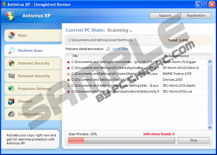 AntivirusXPAntivirusXP is the latest malware to be affecting computer systems globally. Further classified as a form of Trojan infection, any computer system it has infiltrated may be at risk. As soon as AntivirusXP enters into a computer system, it may attempt to adjust the Windows registry keys, and could generate additional malware onto the infiltrated system. A computer system infected with as AntivirusXP may tend to display the following warning signs: * The Process is packed and/or encrypted using a software packing process Should your system be experiencing any of the above mentioned symptoms, chances are there is malware present. So, how would AntivirusXP be able to infect a system? Well, as with many of these type malware applications, there are a few vulnerabilities these type applications target: 1. P2P (Peer-to-Peer) Networks In order to prevent malware from infiltrating your system, there are a number of steps one can take, which include the following: 1. Install a comprehensive anti-spyware product To avoid unnecessary risk of further damaging your computer system, you should make use of a good legitimate and reliable spyware remover, which will come equip with all the necessary tools needed to rid your system of all nefarious activity allowed to enter into the system by AntivirusXP. |