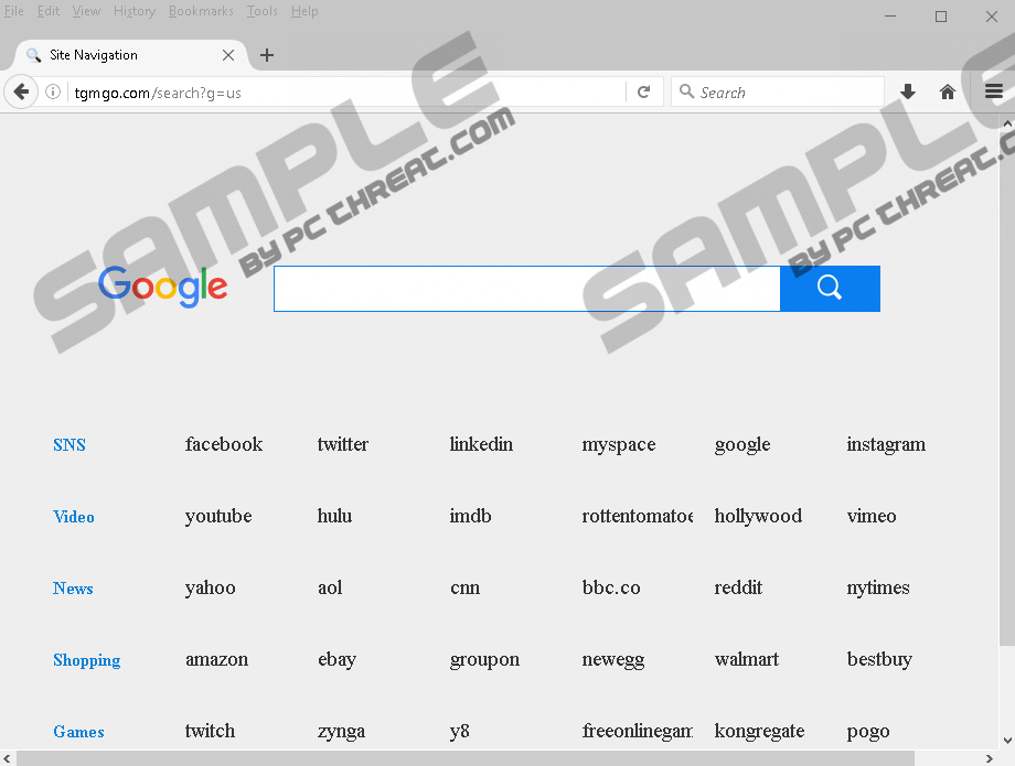 Tgmgo.comTgmgo.com is not an advantageous search engine even though it is powered by Google, and does not differ much from those search tools that are known to be reputable. Therefore, you should take action to delete it. Since Tgmgo.com affects the most popular browsers, including Internet Explorer, Google Chrome, and Mozilla Firefox, those users who have all three browsers installed on their computers have to remove this questionable search engine from all of them to get rid of it fully. Not all the users understand why it is so important to remove this search provider from their browsers, and we find this perfectly normal. Users need to know that Tgmgo.com has several drawbacks. Find more about them in this article. If, after reading this article, you make a decision to replace it with a more trustworthy search tool, do not hesitate to use our manual removal instructions. They will guide you through the entire removal process. Tgmgo.com does not seem to be a harmful search tool at first sight. In fact, we cannot call it a very dangerous search provider either; however, it is clear that it is not as reliable as other search engines (e.g. Google and Yahoo!). Yes, it returns Google search results and enables users to access such popular websites as eBay, Amazon, Facebook, LinkedIn, BBC, and others, but this does not mean that it is safe to use it and you should continue doing that. Research conducted by the research team at pcthreat.com has revealed that the main drawback of Tgmgo.com is that it might display advertisements for users. Most probably, they will be provided for users together with those ordinary Google search results. The presence of ads does not mean that Google is unreliable. Instead, this shows that Tgmgo.com is made in such a way so that it would be possible for developers to provide users with the commercial content. Since this search tool is known to be capable of displaying promotional links and ads, it is very likely that it has only been created to generate the pay-per-click revenue for its author. No, it has not been originally developed to enhance your web searching experience. Remove Tgmgo.com right now because there are much more trustworthy search engines available. Also, you need to know that advertisements shown by this search tool might redirect you to bad pages one day, so the removal of the search tool showing them is the only way to make sure that it is impossible to click on any of them and thus cause harm to the system. All these ads and links Tgmgo.com might show to users is not its only drawback. According to researchers, it is very likely that it also gathers information about users like other questionable search tools. It is hard to say what details are going to be recorded by this search engine because the Privacy Policy document does not exist. The only way to stop the information gathering is to delete Tgmgo.com from browsers as soon as possible. Do this right now because, as you have probably already understood, Tgmgo.com is not a search engine that can be trusted. Users do not set Tgmgo.com willingly on their browsers, but it is still quite prevalent. Therefore, it really seems that it enters computers in software bundles the most frequently. Users living in India, Mexico, and Brazil should be extremely cautious because it has been found that this untrustworthy search engine spreads in these countries primarily. It is not a piece of cake to prevent browser hijackers from entering computers, but you should, at least, stop downloading applications from untrustworthy P2P and other third-party websites in order not to download a software bundle containing threats again. What else our security specialists recommend is installing a reputable antimalware tool. Of course, it has to be trustworthy if you want it to protect the system for you. It should be possible to delete Tgmgo.com from browsers by resetting them to their default settings one by one. If you have never done that before, use our manual removal guide. Less experienced users might still find the manual removal with the help of our instructions too difficult, so we suggest going to delete this untrustworthy search engine automatically for them. Download SpyHunter first from our website and then launch it to delete all the existing threats from the system. Delete Tgmgo.comInternet Explorer