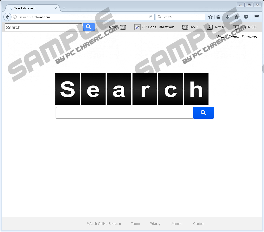 Search.searchwos.comEven though Search.searchwos.com could be available on such a reliable website as Google Chrome Web Store; the application itself may not necessarily be so trustworthy as well. In fact, it would seem the software is falling under the classification of browser hijackers, and so our specialists recommend erasing it with the instructions available below. It is because the search engine has the ability to hijack user’s browser and modify some default preferences. There are a couple of other reasons we would not advise you to use the application as well, but we will talk about them further in the text. Thus, if you want to find out other details about this browser hijacker we urge you to read more. The first time our specialists looked up Search.searchwos.com, it was available together with a browser extension known by a similar name on Chrome Web Store through this link: chrome.google.com/webstore/detail/watch-online-streams/mlpbjcjcpehmeenjdodjemcfemhokfkm, but at the moment the software is no longer there. It is possible that the program was reported as undesirable or received some bad reviews from its users, so Google team recognized it as potentially dangerous and removed it from their store. Nevertheless, it does not mean the search engine could not be distributed using other channels. Another way to come across Search.searchwos.com is to visit its official website (watchonlinestreams.com), although it does not seem to be working at the moment either. The site probably had a suggestion to download a program that should help users stream various content online through their browser. By clicking the download button users would probably install a browser extension called Online Stream, Watch Online Stream, or alike. This extension could add a couple of links that you can reach without its help and install Search.searchwos.com as well. We assume this could be the possible scenario because our specialists have researched quite a few identical applications before, for example, Search.searchlen.com, Search.easymoviesaccess.com, Search.yourpackagesnow.com, and many other that travel in this manner. Since the application’s official site cannot be loaded at the moment, we believe it could be spread through suspicious pop-up ads just like its previous clones. That is if the browser hijacker is still distributed actively. Usually, such pop-ads appear on the computer not accidentally as they could be displayed by another threat, for example, a potentially unwanted program, adware application, etc. Thus, if you noticed an increase of annoying advertisements lately, it might be the perfect moment to scan the computer with a reputable antimalware tool. If the system is cleaned, you should not see any suspicious ads anymore. Both the extension and the browser hijacker should be compatible with Internet Explorer, Mozilla Firefox, and Google Chrome. Based on the browser the hijacker might modify one or all of the following preferences: start page, search engine, or new tab page. As a result, the browser might start loading Search.searchwos.com instead of your previous homepage site or default search provider. The reason it is not advisable to search the Internet with this engine is because the application could show you potentially malicious third-party advertisements in the search results. We cannot claim that all of the displayed ads could be harmful, but there is such a chance, and you should be aware of it if you are thinking about using this tool. To give you an example, the third-party ads might have links to websites created for malicious reasons, such as to distribute malware or gather your sensitive data. Some part of the advertisements could also lead to official web pages of potentially unwanted programs, suspicious toolbars or extensions, adware, other browser hijackers, etc. These are the main risks and the reason we recommend the application's removal. Mainly, there are two ways you could eliminate the browser hijacker. Firstly, the threat might be deleted manually if you remove its extension from the browser and fix or erase its modified particular files. To learn how to complete these tasks you could check the instructions placed at the end of the text. The other way to get rid of Search.searchwos.com is to use a reliable security tool. It would help you fix or erase the applications created data automatically, so it should be an easier option for users who have less experience in these matters. Remove Search.searchwos.com from browsersInternet Explorer