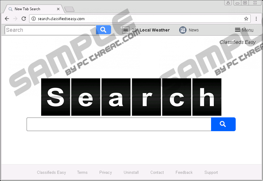 Search.classifiedseasy.comSearch.classifiedseasy.com is a useless and potentially unreliable search page with a fake toolbar. This malware infection appears in your major browsers after a browser hijacker is installed on your system. As a matter of fact, this infection is no news for us since it is just a new clone in a huge family of browser hijackers, including Search.searchlypackage.com, Search.searchfacoupons.com, and Search.searchwos.com to mention a few among the latest newborns. This hijacker can modify your home page settings in your Mozilla Firefox, Google Chrome, and Internet Explorer browsers and thus expose you to its potentially unsafe third-party content. This infection most likely enters your computer with a company of other malicious software installers, which clearly means multiple vulnerabilities for your system security. If you want to restore the safety of your virtual world, you should not hesitate to remove Search.classifiedseasy.com from your system. This browser hijacker follows suit and is mainly spreading via corrupt third-party ads in freeware bundles. It is more likely that such an infection is distributed bundled with other malware infections but we cannot claim that it is not possible that by clicking on unreliable third-party content you cannot simply install this infection directly. When your system is infected with malware programs, such as adware applications and browser hijackers, it is always risky for you to go online because browsing can become a real nightmare for you. Adware programs can flood your screen with all kinds of annoying and dangerous third-party ads that can drop infections directly or in bundles. But browser hijackers can also present you with unreliable ads and search results that can have the same effect when clicked on. But you can also end up on shady websites accidentally and click on corrupt content there. For example, you may want to download a free program or a crack and you run a web search. Even if you are using a reputable search engine, such as Google and Yahoo, you can find yourself on a search results page that is filled with links leading to fake and malicious websites promising you your targeted file and infecting you with malware. You should close such pages right away, although you might infect your computer the moment you load such a page if you are unlucky enough. In any case, we suggest that you delete Search.classifiedseasy.com as soon as possible and then, scan your computer with a trustworthy malware scanner to detect all other threats. This browser hijacker is an identical clone of its predecessors and has the same fake toolbar at the top. This toolbar hosts the usual search box on the left and a number of easy-access buttons on its right, including a local weather widget, and, in this case, links to several classified ads-related pages (e.g., warsaw.craigslist.pl and close5.com/s/%20%20?from_ec=1). The local weather widget page is known to contain several potentially unreliable third-party banners and the promoted classified ads pages could also be harmful if you engage with their advertisements. Unfortunately, it is also not advisable to use the search engine either as it could just as well put your system security at risk. This questionable search engine forwards all your queries to a possibly manipulated search.yahoo.com page, which could contain promoted third-party ads and links. While most of these may be reliable and legitimate, it is also possible that some may well be corrupt and lead to malicious websites operated by cyber criminals. Since it is rather risky to even land on malicious pages as you could infect your machine with dangerous malware threats or get scammed by crooks and lose money, we advise you to remove Search.classifiedseasy.com as soon as possible. We have found that you may get rid of this annoying browser hijacker by simply restoring your home page settings in your browsers. If you feel able to eliminate this threat manually, you can use our instructions below as a reference. Do not forget about the possibility that there may be other malware threats on your system right now endangering the normal operations of your computer. If you do not want to hunt down these infections one by one manually, we advise you to employ a reputable anti-malware program as soon as possible. Such a security tool can automatically defend your system from all known malware threats. Remove Search.classifiedseasy.com from browsersMozilla Firefox