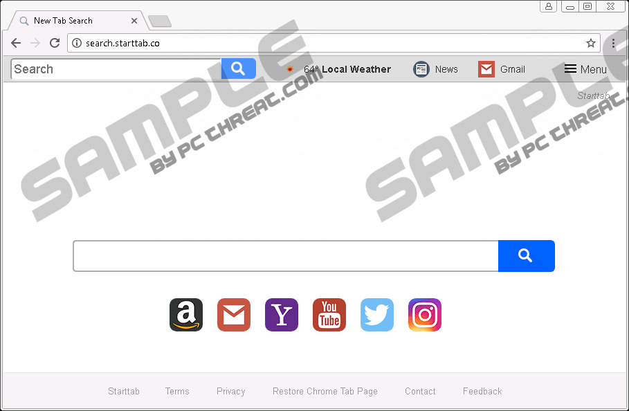 Search.starttab.coAlthough Search.starttab.co promotes Amazon, Google, Yahoo, YouTube, Twitter, and Instagram services, it is not a tool you should trust and use. If you were forced or tricked into letting this hijacker in, you probably want to get rid of it as soon as possible. If you let it in willingly, you might still believe that this hijacker is harmless. Well, it is not, and the longer it stays active on your browser, the more dangerous the situation might get. Your personal information could be leaked, and you could be introduced to potentially unreliable advertisements in a very clandestine manner. Due to these reasons, it is very important that you remove Search.starttab.co as soon as possible. Of course, since this hijacker usually travels bundled with an extension – it should be called “Starttab” – you might have to eliminate more pieces of software. If you are ready to jump to the elimination, scan your PC first to check if other infections are active. How did Search.starttab.co enter your operating system? If it came bundled with an extension, where did you find it? Was it introduced to you via an aggressive pop-up advertisement, or maybe an unfamiliar installer? According to our research, such suspicious sites as descargar.es or malavida.es could host the installer of this hijacker. Unfortunately, it could be introduced via software bundles full of unreliable and undesirable programs. As you might know, Search.starttab.co belongs to a huge family of hijackers (along with Search.searchgstt.com, Search.searchwatchytsn.com, and Search.searchlttrn.com), and, in most cases, they are seen traveling in malicious bundles. Although these hijackers might represent different links, essentially, they are identical. They even follow the same privacy policies, one of which informs that personal data can be recorded and leaked to undisclosed parties. As you can guess, this is one of the main reasons we recommend deleting Search.starttab.co or any other hijacker from the same family. Another thing you learn by reviewing the Privacy Policy that supports these hijackers is that you can be exposed to third-party content while using it. If you have interacted with Search.starttab.co, you might already know that it redirects to search.yahoo.com. Needless to say, this action is illegal because you are not informed about it, and that is something you should focus on before you decide that Yahoo Search is a legitimate and trustworthy search engine. Although it is, the devious Search.starttab.co can exploit it to expose you to third-party content in a very inconspicuous manner. Would you click on random ads when interacting with an unfamiliar search engine? It is unlikely that you would. But would you click on ads represented via a search engine you know and trust? You might, and that is exactly why Search.starttab.co is redirecting to search.yahoo.com. Tracking cookies – and some of them might include third-party cookies – could be used to record your browsing history and learn about your preferences. Using this data, the unknown advertisers could easily introduce you to ads that look interesting and intriguing. Of course, this could be used to deceive you into interacting with potentially malicious ads. It is strongly recommended that you delete Search.starttab.co from your browser immediately. According to our research, this infection should only affect Internet Explorer, Chrome, and Firefox browsers, but, of course, if you find it on a different browser, you have to eliminate it as well. If you do not know how to so that, post a comment below, and we will upgrade the guide below. This guide shows how to remove Search.starttab.co from your homepage; however, you must keep in mind that other pieces of software might be involved. For example, if the hijacker came packaged with an extension, you must delete it as well. In fact, you might not be permitted to change homepage settings until you delete this extension. Also, unrelated third-party software could have come bundled as well if, for example, you used an unreliable software installer. In this case, you have to evaluate the situation and check if you can erase all threats yourself. If you cannot, immediately install an anti-malware tool that can eliminate them automatically, as well as keep your system protected. Search.starttab.co RemovalInternet Explorer: