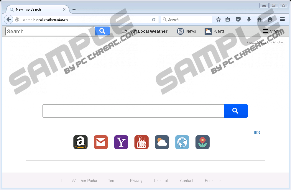 Search.hlocalweatherradar.coSearch.hlocalweatherradar.co is one more browser hijacker that currently roams the web. It is critical to avoid it at all costs since it exhibits extremely invasive functionality. If you happen to already have this devious program running on your personal computer, make sure to remove it as soon as possible. That is paramount because due to the overall functionality of this hijacker, surfing the web the way you like it will be an impossible task. It is mostly because this program is capable of making intrusive and unwanted changes to major web browsers such as Internet Explorer, Mozilla Firefox, and Google Chrome. What makes matters worse is the fact this hijacker could prove to be a major virtual threat. If you wish to know more about the intricate functionality of this invasive program, make sure to read the entire report. Besides that, we also present a detailed removal guide for Search.hlocalweatherradar.co that you must use to get rid of it once and for all. Search.hlocalweatherradar.co functions in a quick and silent manner. Right after it gains full access to your operating system, it starts making intrusive changes within your web browsers default settings. It modifies files and registry entries linked to settings of major browsers without any warning or authorization. Due to such intrusive modifications, you will notice a sudden change of your default homepage. Some users might think that it is not that big of a deal. The reality is quite different. As time goes, you will realize what a negative impact such unauthorized change can have on the way you experience the web on a daily basis. That is so because you will have no choice but to use a questionable third-party website as your default homepage for as long as this hijacker will be up and fully running on your operating system. What makes matters worse is the fact that the newly appointed homepage does not provide any valuable features. It provides a list of quick access links; unfortunately, you cannot customize any of them. Also, there is a whether tab, which does not provide reliable information at all times. As you can imagine surfing the web the way you are used to will be virtually impossible to this single intrusive change within your browser. The only way that you can restore your web browser's default settings is by executing a complete removal of Search.hlocalweatherradar.co. To do that without encountering any major problems, use the instructions that we provide below. During further analysis of our malware experts have discovered that there is more to Search.hlocalweatherradar.co than meets the eye. While the intrusive functionality of this browser hijacker should be a reason enough to delete it without any hesitation, you must also know that it could prove to be quite dangerous. That is so because using the search field on a newly appointed homepage could have devastating outcomes. As it turns out you could come across results that might host devious redirect links. What this means is that clicking on a seemingly harmless result your risk entering a devious third-party site. Thus, your operating system could be exposed to the questionable and otherwise dangerous content. You might find yourself on a fake online shop created by cyber crooks to steal your credit card data. In other situations, you might end up on a web page that provides malicious software for download. As you can imagine, entering any of the mentioned websites could have devastating outcomes. If you are a security conscious user, make sure to delete Search.hlocalweatherradar.co in its entirety at the very same moment that it is found up and fully running on your personal computer. The complete removal of Search.hlocalweatherradar.co should be your utmost priority if it is ever found running on your personal computer. You need to execute the instructions that we provide below with precision since a single mistake could have undesirable outcomes. That is so because leftovers of Search.hlocalweatherradar.co could turn out to be quite invasive as well. In certain instances, they might be enough to restore the hijacker in question without your knowledge. There is also a possibility that just a few traces could turn out to be more than enough for the devious changes to remain in place. If you want to avoid finding yourself in such a situation and be sure that every single bit of Search.hlocalweatherradar.co has been removed from your operating system, you need to execute an in-depth analysis of your entire operating system for anything associated with it as soon as you are done with the instructions below. How to remove Search.hlocalweatherradar.co from your operating system