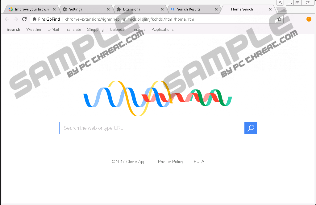 Findgofind.comFindgofind.com is a devious piece of software that you should avoid at all times. If unfortunately, it is up and running on your PC, make sure to execute its complete removal without any hesitation. It is important to do so because malware experts working at our internal labs have classified this application as yet another browser hijacker. Just like any other intrusive program of this category, it can make unwanted alterations to your browser default settings. Due to such modifications, your online experience will become a much more annoying one, to put it lightly. If that was not enough, you should also be aware of the fact that in some instances this hijacker could prove to be quite dangerous. That is so because it might expose your operating system to potentially harmful web content. It goes without saying that you must remove Findgofind.com without any hesitation. To do that, make sure to use the detailed removal instructions that we provide below. The center piece of Findgofind.com that makes it function in the way it does is a browser extension, which is installed silently and without your authorization, right at the same time that this hijacker enters your operating system. The questionable browser plug-in triggers a few unwanted changes to your web browser's default settings. It alters your search engine and new tab page. These modifications might not seem like a lot. Unfortunately, they will negatively affect your online experience, to put it lightly. One of the most annoying things regarding these changes is the fact that instead of a blank page that you are used to when opening a new tab page, you will be presented with a questionable third-party site, whether you like that or not. The same can be said about your search engine because all of your queries will go through a suspicious third-party search provider every time you will try to look up anything on the Internet. Due to all of this, browsing the web the way you are used to will become an impossible task. You must restore your browser's default settings so you can use the web the way you like it. The only way to do that is by executing a thorough removal of Findgofind.com. You must remove its every bit since its leftovers could keep the devious changes in place. To get rid of this hijacker without encountering major problems, make sure to use the removal guide below. While Findgofind.com is primarily known for its intrusive functionality, you need to know that our malware experts have discovered that in some instances this hijacker could turn out to be the primary reason your operating system might be subjected to dangerous web content. You could find yourself on questionable and even harmful websites or fake online shops. This could happen if you choose to use a newly appointed search engine because it might present you with results that could host redirect links. If you ever happen to enter any of the mentioned sites via a redirection, you could face disastrous outcomes. For instance, if you land on a site that hosts malicious software there is a possibility that you could infect your PC with some unknown malware. As you can imagine encountering a fake online shop might result in handing over your credit card data without your knowledge to cyber crooks, who have crafted the devious web page. Even though search results embedded with redirect links do not occur often, a chance of coming across one remains and the consequences of that could be devastating. As you can see Findgofind.com could prove to be a major virtual threat, and that cannot be tolerated. Make sure to delete it at the very same moment that it is found active on your PC. To delete Findgofind.com quickly and easily, make sure to follow the instructions that we provide below. You must execute each step with precision since a single mistake could lead to an incomplete removal, which as you can guess could have unwanted outcomes. Due to leftovers of Findgofind.com being active on your PC, the hijacker might be restored silently. In other situations, traces of this program might be just enough for the changes to remain intact. It is critical to avoid all of this. There are two ways that you can check your PC for anything linked to Findgofind.com. One of them is a manual analysis of your operating system for any leftovers, which should be performed by advanced computer users. Another, more accessible, way is scanning your PC with a professional antimalware tool, which can automatically detect and delete anything associated with the browser hijacker in question. How to remove Findgofind.com from your PCGoogle Chrome