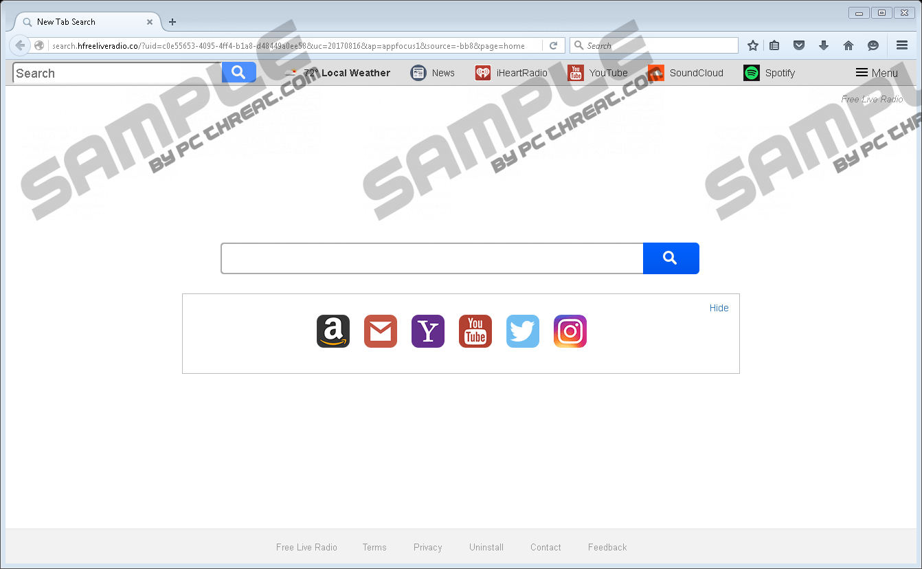 Search.hfreeliveradio.coYou might have a say when it comes to the installation of Search.hfreeliveradio.co because this browser hijacker is represented by the “Free Live Radio” extension. This extension is officially represented at freeliveradio.co/Radio, and the installer is available for Mozilla Firefox and Internet Explorer browsers. Google Chrome users are offered the installer at chrome.google.com/webstore/detail/free-live-radio/pacogkibldhicojmklpbapiilaleilbp via the same download page. According to the information linked to this Chrome web store installer, it has over 61,800 users, which is not a small number. While the official installer exists, it can be misleading, and users might acquire the hijacker without even meaning to. Of course, malicious installers and pop-up ads could be used for the distribution of this suspicious software as well, in which case, browsers could be hijacked without the user’s permission at all. In any case, whether or not you have let it in yourself, we advise removing Search.hfreeliveradio.co, and if you are curious to learn more, please continue reading. Search.hfreeliveradio.co is completely identical to such browser hijackers as Search.searcheasyra.com, Search.easyradioaccess.com, and Search.myradioxp.com. The only thing that is different about these threats is that they are associated with different extensions. These extensions are represented in a questionable manner because they are offered as these great, amazing tools, when, in reality, all they can do is expose users to the hijackers. Search.hfreeliveradio.co and its clones provider users will easy-access links to iheart.com, soundcloud.com, spotify.com, and pandora.com, which is expected from an add-on called “Free Live Radio;” however, the add-on is not beneficial as it simply adds links to sites that you can visit without it. Needless to say, if a tool is not beneficial, you should delete it without any hesitation. Well, if it is not that useful, why was it created at all? Our research team suggests that it was created for two specific reasons: To record information and to promote third-party services and offers. It appears that Search.hfreeliveradio.co can even record personally identifiable information, and since this information can be disclosed to unknown parties, we suggest deleting all data trackers ASAP. When it comes to promoting third-party services, Search.hfreeliveradio.co employs the search function. Whether you accept it yourself or it is done without your permission, the “Free Live Radio” add-on always modifies homepage and New Tab page settings to represent Search.hfreeliveradio.co. Our research team has found that the hijacker might also take over the default search provider on Mozilla Firefox browsers. The interface of the hijacker – as we discussed already – includes some easy-access links to popular websites, but what we need to focus on is the search dialog box in the center. Entering keywords into it and then interacting with the content shown is dangerous because the hijacker can, first of all, redirect you to Yahoo Search (that is unauthorized, and, therefore, malicious) and also modify the results. By interacting with sponsored content you could let in more data trackers that could be even more intrusive, and you could get involved in virtual scams, which, we are sure, you want to avoid. If you take everything into consideration, you must understand why we recommend deleting Search.hfreeliveradio.co. There is only one way to delete Search.hfreeliveradio.co from all browsers at once, and that is by employing anti-malware software that can automatically erase malicious components. This is a wonderful option if your operating system got infected with several other threats – which could happen if the hijacker comes bundled with them – and if you want to keep the operating system guarded in the future. Of course, you can remove Search.hfreeliveradio.co manually as well, but, in this case, you need to follow the instructions depending on the browser you use. Hopefully, the steps shown in the guides below are easy to follow. If not, you can always ask us questions via the comments form. Of course, if you decide to get rid of the hijacker manually, you have to make sure you scan your operating system to check for other potentially active infections. If they are found, you have to eliminate them as soon as possible. Refer to the removal guides that are available on our website. Search.hfreeliveradio.co RemovalMozilla Firefox: