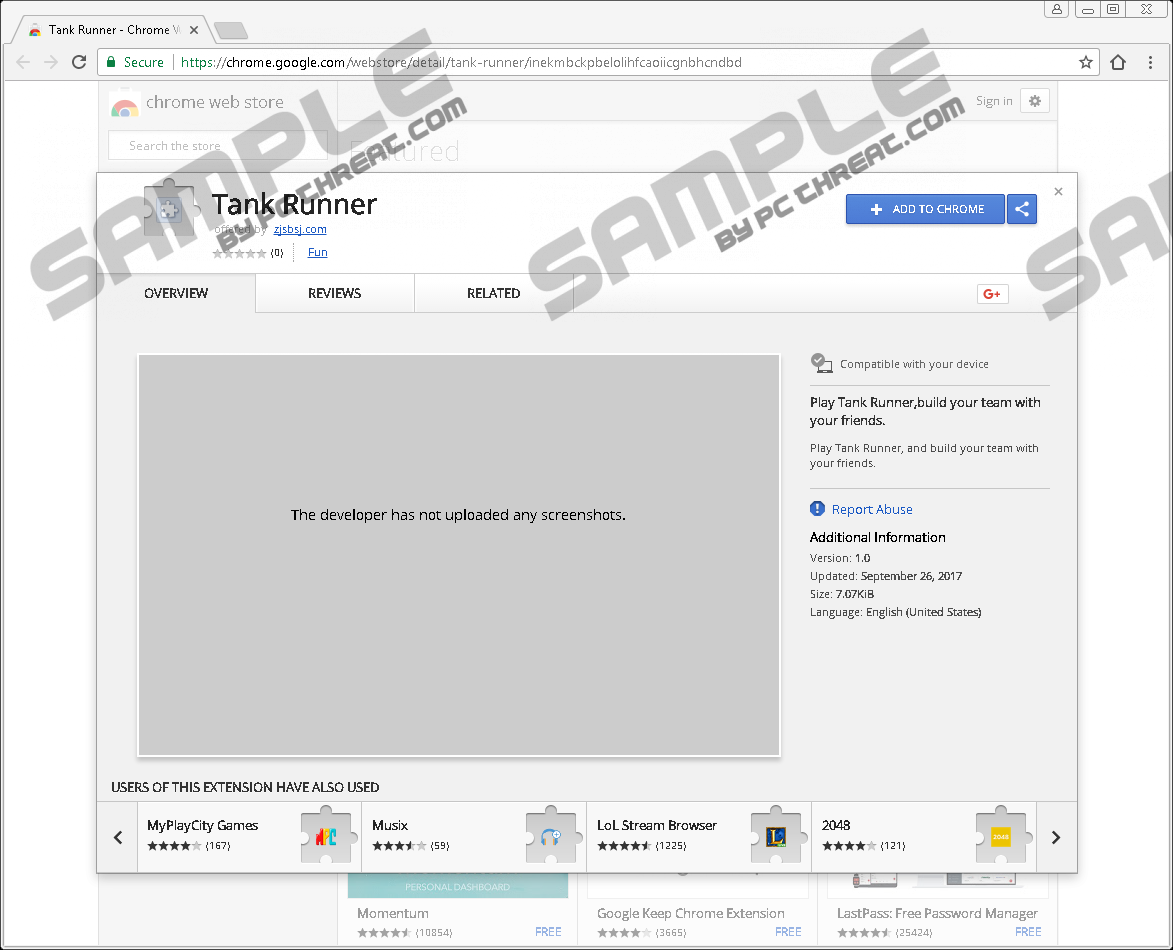 Tank RunnerIf you have downloaded Tank Runner, the chances are that you did it without thinking or that you were forced into doing it. Our research team has found that this potentially unwanted program (PUP) can be promoted via a page that is represented in full-screen. Needless to say, you do not see that every single day. If you are more experienced, you should have no trouble closing the page with the installer of the suspicious extension. Normally, you can switch between full-screen and normal mode using the F11 key on the keyboard. If that does not work, you can launch Task Manager by tapping Ctrl+Shift+Esc keys and then terminate the process representing your browser. If the annoying installer page does not show up again, it is most likely that that was a one-time occurrence. If you are shown the same installer again, you need to be worried. In both cases, it is crucial to inspect the operating system because malware or adware might exist. If it does, it must be deleted. In this report, we also discuss how to remove Tank Runner, which you might be interested in if you have let this PUP in. The same adware sever, http://onclickrev.com/afu.php?zoneid=1407888&var=1407888, is responsible for introducing users to Tank Runner and Toothy, which is another potentially unwanted program that our research team recommends removing. Both of these PUPs used to have installers available on the Chrome web store, but both have been taken down because of the bad reputation they obtained. When the Chrome web store installer representing Tank Runner was still active, zjsbsj.com was listed as its developer. This website, of course, does not work, and the page that used to be shown in full screen – zjsbsj.com/ins/?id – does not work either. When it did, it would show a pop-up suggesting that the installation of the extension is “recommended.” Also, the disclaimer shown via the pop-up would indicate that Chrome’s Default Search would be modified alongside. So, if you have downloaded the suspicious add-on, you need to check if your default search provider was modified as well. If it was, hopefully, the settings will be restored as soon as you delete the add-on. Officially, Tank Runner was promoted as an interactive, team-based game, but trusting the information that is curated by software developers is not always a good idea. While this extension might allow you to play a game, it might also be used to spy on you, record information, communicate with unknown parties, load advertisements, and do other strange things. It would be dangerous to say that you are completely safe while Tank Runner is active. At this moment, this suspicious extension does not have an official download page, and there is no way of knowing how exactly it works. Since it is completely unpredictable, we recommend deleting it from your browser as soon as possible. The good news is that eliminating this suspicious, undesirable extension is very easy. What might be more complicated is the elimination of third-party infections active on your PC. Use an authentic malware scanner to help you identify the threats that are active. Once you are aware of that, you can take the right steps. If you have experience removing Google Chrome extensions, you should have no trouble deleting Tank Runner as well. Before you get rid of this potentially unwanted program, we advise inspecting your operating system with a legitimate malware scanner to check if other infections are active. If any threats are detected, hopefully, they are not highly malicious, and you can eliminate them yourself. If you cannot clean your infected operating system yourself, installing an anti-malware tool is recommended. Of course, you have to make sure that this tool is legitimate and reliable; otherwise, it will not help you. Regardless of which method you choose, you have to make sure that your virtual security is taken care of. Needless to say, that is solved if you install trustworthy anti-malware software, but if you choose to clean your PC and browsers manually, that is something you need to think about. Remember that if you do not install security software, other PUPs and, unfortunately, more serious infections, could invade your operating system. Tank Runner Removal