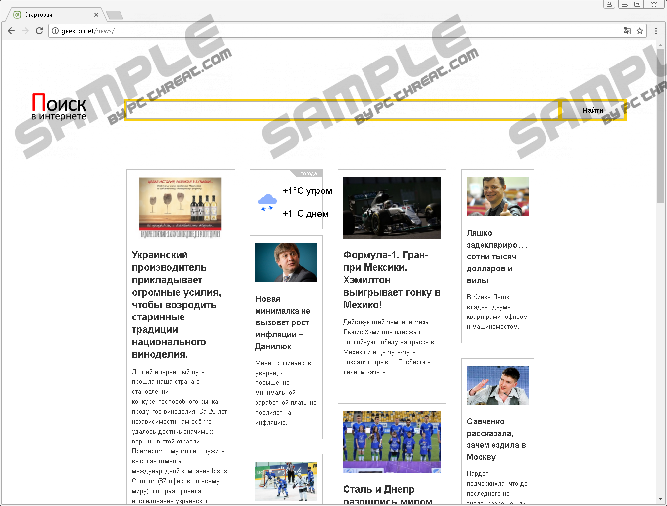 Geekto.netA program, which goes by the name of Geekto.net should not be active on your personal computer. It is critical to remove it without any hesitation if it is ever found active on your personal computer because it is nothing more than a browser hijacker. If you are not familiar with devious programs of this classification, you must know that they are fully capable of making devious changes to your browser's default settings, without any warning whatsoever. In turn, your online experiences will be ruined, to put it lightly. It is also critical to note that that having this invasive application active on your PC could lead to further virtual security problems since it might expose your operating system to devious online content. Learn how this hijacker functions, by reading the rest of this article. Finally, to help you delete Geekto.net once and for all, we present a detailed removal guide. During the initial analysis of Geekto.net, our malware experts have discovered that this malware is mostly spread in the Russia, Ukraine, Belarus, and quite a few countries in the region. While that is the case now, there are no guarantees that this devious hijacker will not be spread elsewhere. Therefore, it is crucial to have a secure operating system at all times. The primary indication that the hijacker is active on your personal computer is a sudden change of your browser's default settings. The main alteration initiated by this suspicious program is of your default homepage. One of the most annoying things in regards to all of this is that you are not notified about it in any way. At first, this modification might not seem like a big deal. Unfortunately, that is not the case, in reality. Having, the hijacker in question up and running on your personal computer, means that you will have no choice whatsoever, but to us the devious third-party site as your default homepage at all times. It is important to note that surfing the web the way you are used will no longer be possible. Also, you must be informed that using the search box on a newly appointed homepage could be bothersome because it might present you with sponsored results instead of useful ones. To regain your browser's default settings once and for all, you must perform a complete removal of Geekto.net without any hesitation. To do that in just a few simple steps, make sure to follow the removal guide below. The complete removal of Geekto.net is important not only because it is annoying but because it could prove to be quite dangerous. As it turns out, this hijacker might lead you to suspicious and even malicious websites. That could happen if you choose to use the questionable search filed for your online queries. During our analysis, it has been discovered that some results could be embedded with redirect links. By clicking on such a result, you could end up on a webpage crafted by malware developers. In some instances, just entering sites like that could be more than enough to infect your personal computer with some unknown malware. That might happen because a website could be running something known as an arbitrary code execution exploit, which is infamous for its ability to start an installation of some program without the user's consent. In other instances, you could end up on fake online shops, which cyber crooks craft for a very simple reason - to steal your credit card data. It should be more than obvious that entering such a site could have disastrous outcomes. Your best bet to maintain a clean and secure operating system is by executing a complete removal of Geekto.net without second thoughts. Only a complete removal of Geekto.net will help you restore your browser's default settings once and for all. Keep in mind that you must delete everything associated with this browser hijacker; otherwise, its traces could remain active on your PC. If that happens, those traces could trigger a restoration of Geekto.net without your knowledge. In other situations, they might be just enough for the hijacker to continue its functionality. If you want to be sure that every single bit of this intrusive program has been removed successfully, make sure to double-check your operating system for anything associated with it. If you believe that such analysis is a bit too complicated, scan your PC with a reliable antimalware tool because it can detect and delete anything associated with Geekto.net automatically. How to remove Geekto.net from your PC