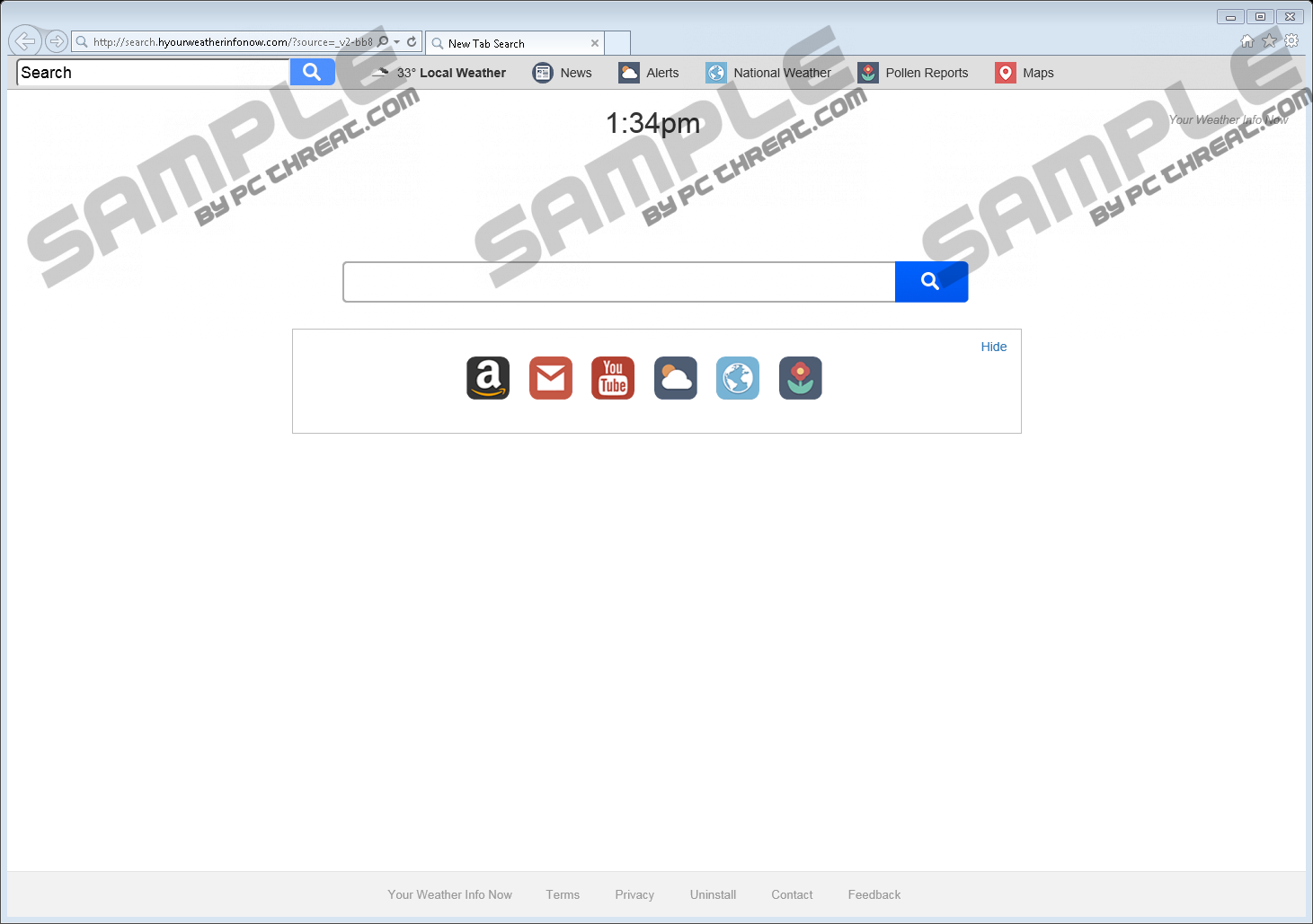 Search.hyourweatherinfonow.comSearch.hyourweatherinfonow.com might not look like a suspicious search engine, but our specialists discovered it could show modified search results, among which the user might notice unreliable advertisements from the third party. Because of this, it falls under the classification of browser hijackers. The application can also change user’s homepage, default search engine, or even other browser preferences. Naturally, if you are not happy with these changes, we advise you to eliminate this suspicious search engine with no hesitation. Further, in the article, we will explain more about why it might be risky to keep it on the system and how it could settle in, so if you would like to learn more, we invite you to take a look at the rest of the text. Slightly below it, we will place deletion instructions prepared by our specialists as well; thus, if you require any assistance while removing the browser hijacker, feel free to use our provided steps. Our researchers say Search.hyourweatherinfonow.com should work with Google Chrome, Mozilla Firefox, and Internet Explorer. Apparently, the browser hijacker could settle in if the user encounters ads distributing it or downloads an installer bundled with it. Both the suspicious ads and the bundled installers could be found on torrent and other untrustworthy file-sharing web pages, and so if you occasionally download content from such sites, we recommend being more careful. To ensure the installer from an unreliable site is not malicious the user could scan it with a reliable antimalware tool. What’s more, it would be advisable to pick advanced or custom installation settings. That way the user may have a chance to deselect bundled applications he does not want to receive or perhaps even learn vital details about the program he is about to install. However, probably the safest option would be to avoid file-sharing web pages and download software from legitimate sites. In case, the browser hijacker is downloaded, it might settle in by modifying files belonging to the browser it is about to hijack. After such alterations, the affected browser might start loading Search.hyourweatherinfonow.com each time it is opened, when the user searches the Internet, creates a new tab, etc. As we explained earlier, the tool could show modified search results since it seems like it uses a modified Yahoo search engine version to gather them. A modified version may mean the application might be able to alter the collected results, for example, by placing additional advertising content among them. The bad news is if the browser hijacker does so there might be not knowing where such advertisements could come from. To be more precise, there is a possibility some of them might be potentially dangerous. For instance, the ads may redirect the user to sites distributing similar threats, malware, etc. Therefore, if you notice such content while surfing the Internet with Search.hyourweatherinfonow.com, we would advise you to be extra cautious. On the other hand, knowing the browser hijacker could show you suspicious advertising content, it would be smarter just to get rid of it and find yourself a more reliable search engine, for example, google.com, search.yahoo.com, etc. The application can be deleted in two ways. First of all, more experienced users could try to locate the data possibly modified by Search.hyourweatherinfonow.com and erase it manually. Our researchers prepared deletion instructions that may help you with this task, so if you feel you may need some assistance, we encourage you to follow the steps provided a bit below this text. The other way to remove this browser hijacker from the system is to scan it with a reliable antimalware tool of your preferences. Users who do not have such a tool yet could simply install it. Later, we recommend performing a full system scan during which the chosen tool should detect the data associated with Search.hyourweatherinfonow.com and help you erase it. Users who have more questions about the threat can also leave us a message at the end of this page. Eliminate Search.hyourweatherinfonow.comInternet Explorer